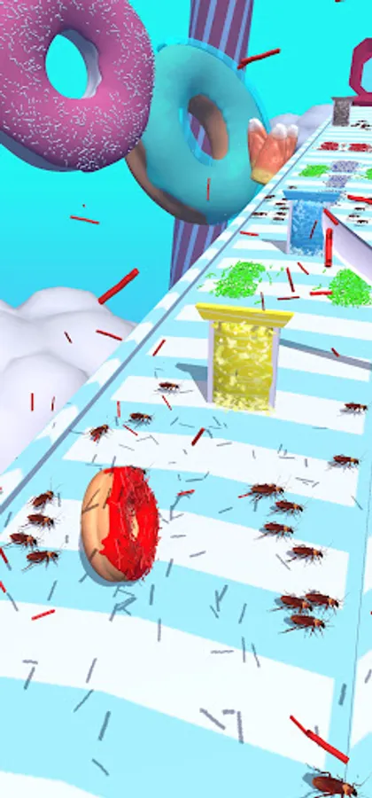 Do you love eating donuts? So do we! As well as creating them, which is is the main topic of the Game DonutRoll 3D. Rolling down the track you are able to choose your toppings, sprinkles, and if you fell like it, even bugs!
