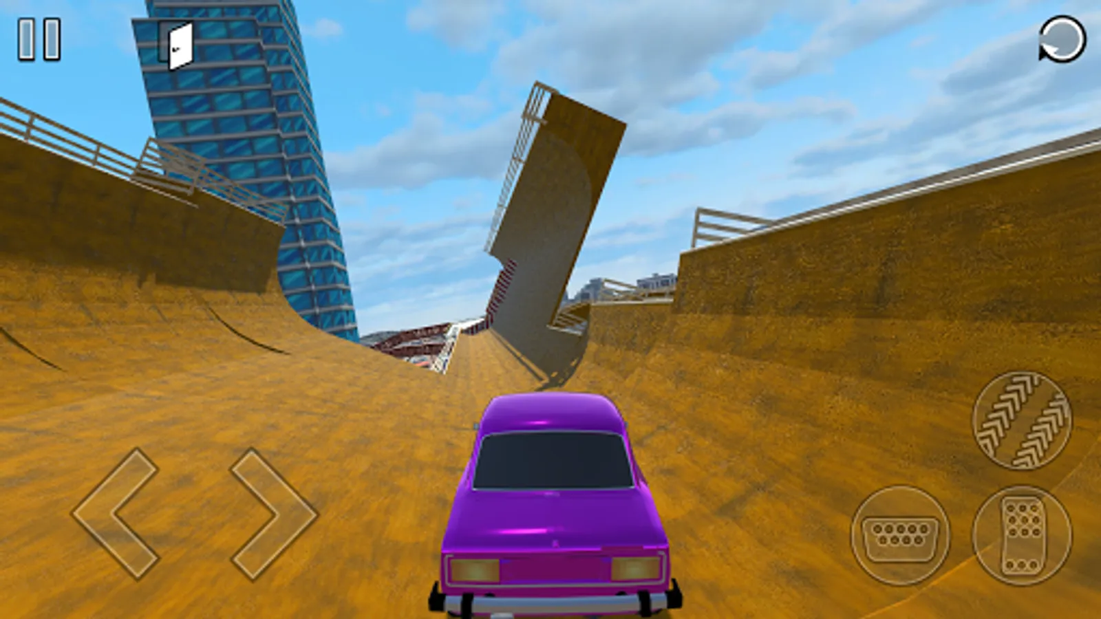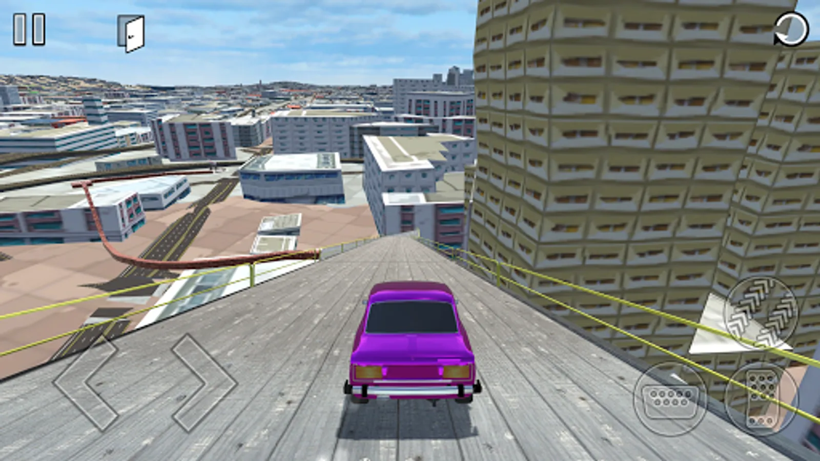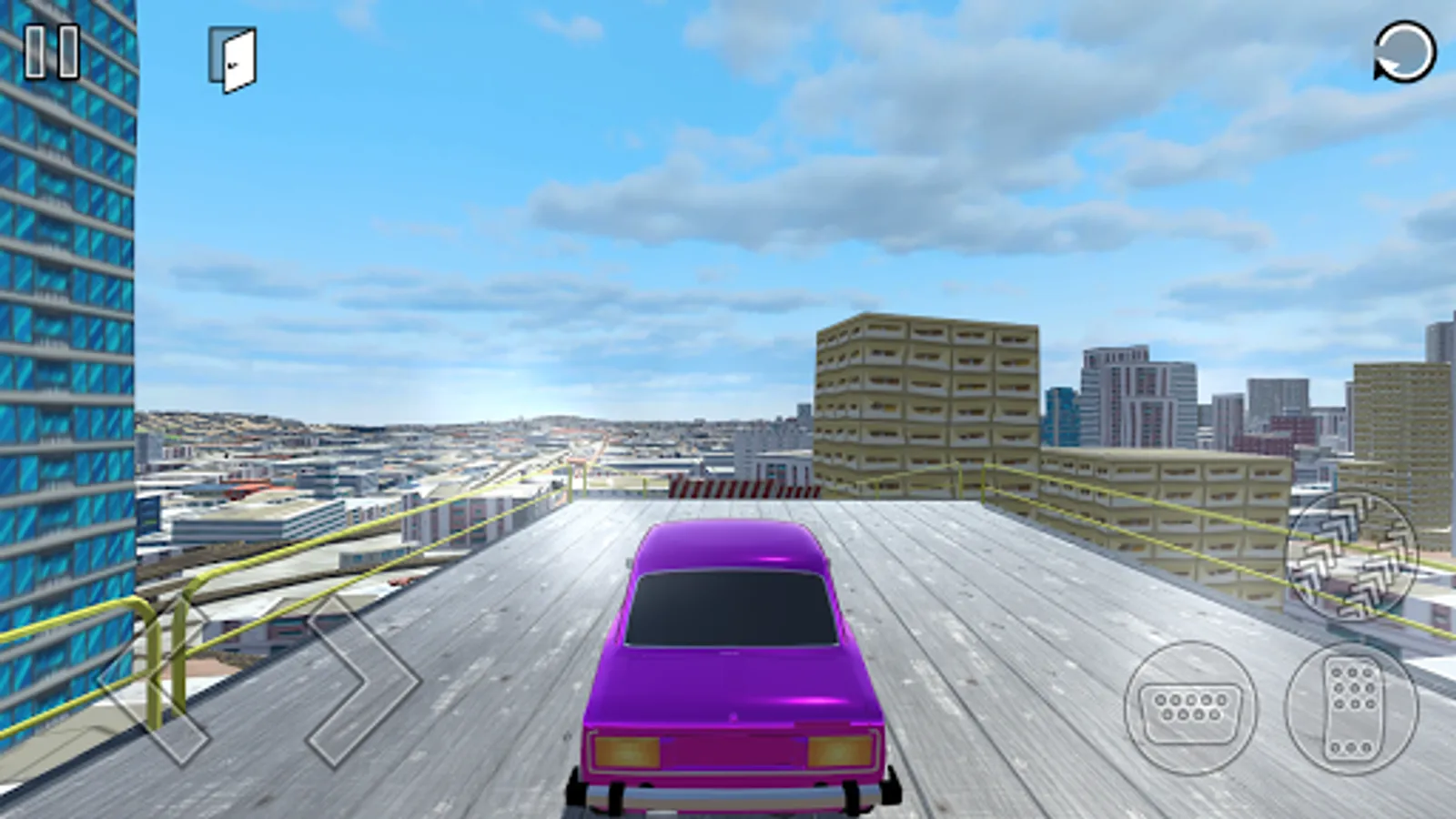 This racing game challenges you with just one level in a Soviet car in the sky over a huge city.