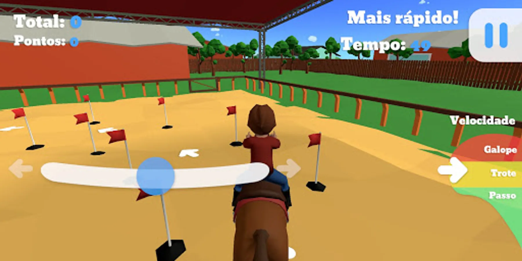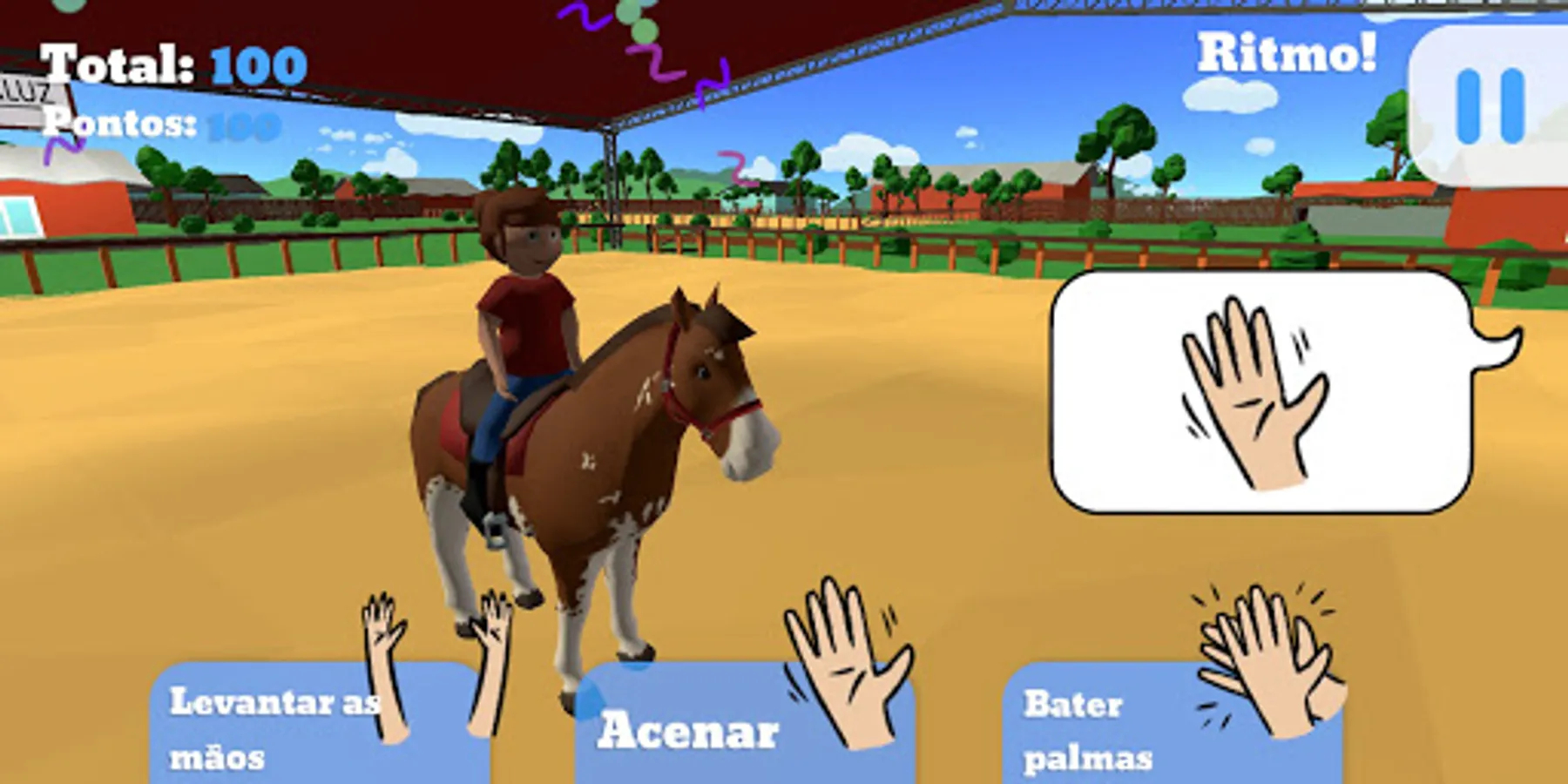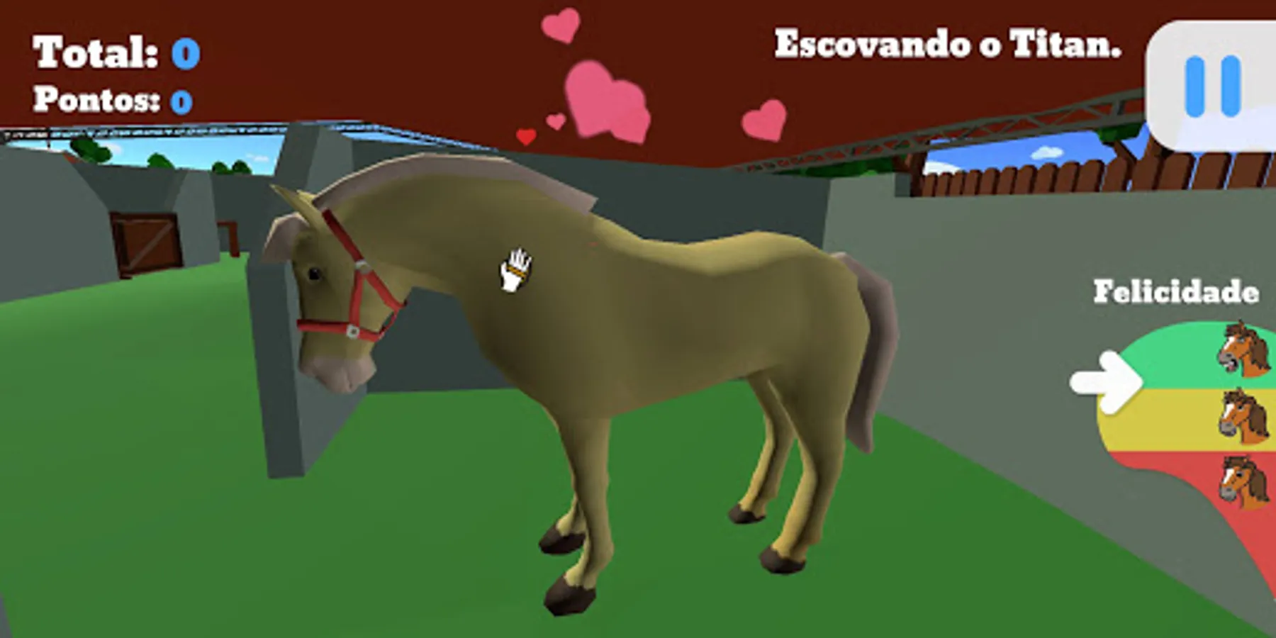 The game "My horse Bill" was made for people, especially children, who love the activities done during a Riding Therapy session, where we can explore its potentials of fine motor coordination in activities related to the bond with the horse by feeding him, playing rings in the tubes, balls in the baskets, finding objects hidden in several different places and also feeling that you are on top of the horse playing a little balance.