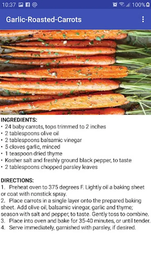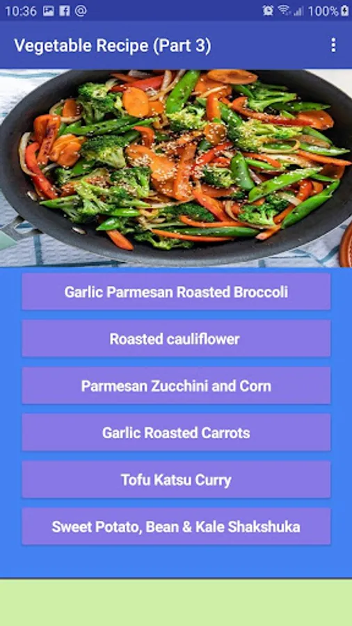 Navigating your favorite vegetable recipes has never been this easy and fun. This Healthy Vegetable Recipes app will show you different categories like Breakfast, Lunch, Dinner, and Snack. Then each vegetable recipe comes with a lovely photo and all you need to do is to tap on it. Easy peasy!
