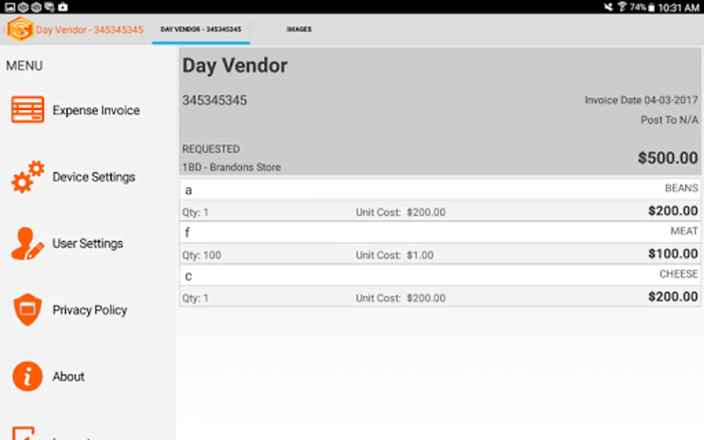 View Expense Invoices on the go with Expense It. You will have instant access to your Expense Invoices and any saved images. If you are using Expense It and Invoice Imaging you will be able to view, add, and delete images associated with your expense invoices.