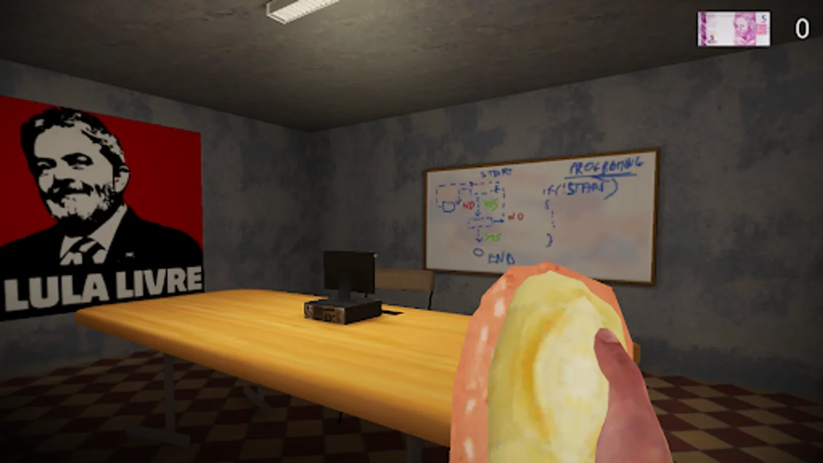 A horror game where you embody an activist who accepted a massive bribe of 30 reais to join the opposition. But who would have thought that our hero would be guarding the 30 reais?