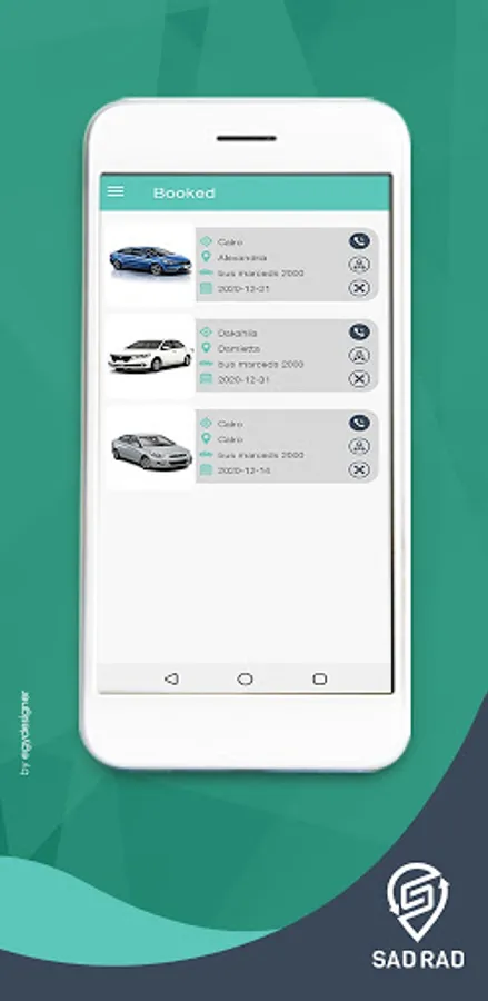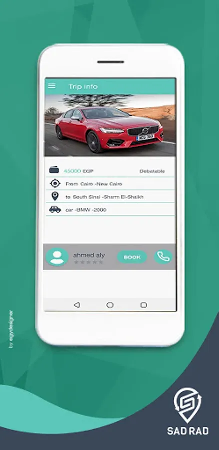 open "Sad Rad" application and locate your trip "to and from", select the type of car "car, microbus, minibus", and choose the suitable trip for you in terms of travel date, time and price. View the Sad Rad Partner profile and see the evaluation of previous customers . Then click Book and contact the owner of the car directly. And then rate the trip.