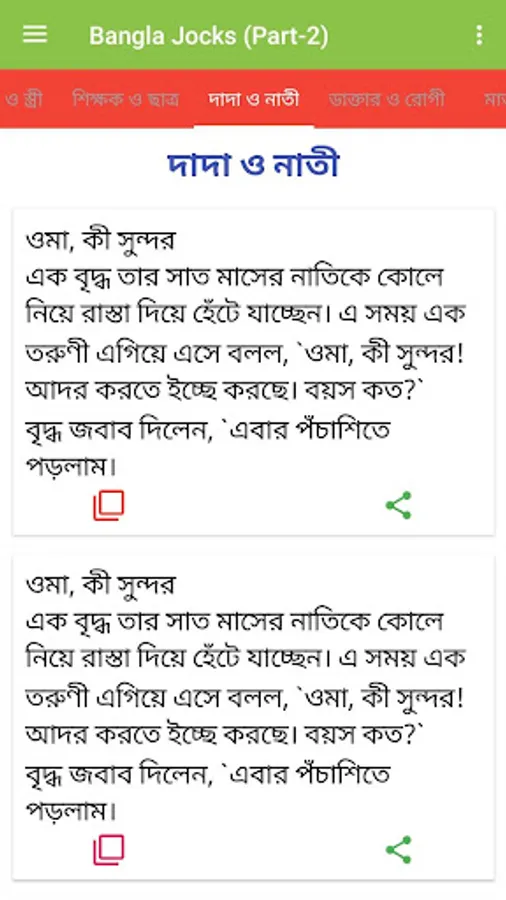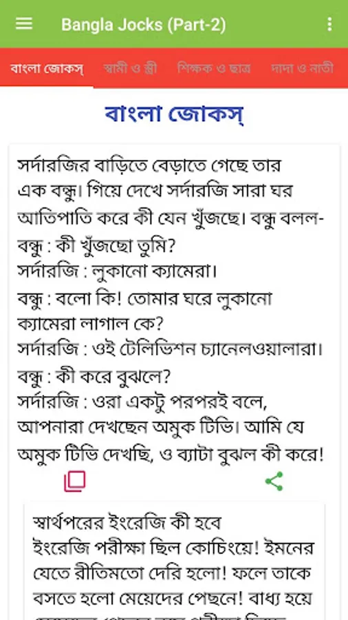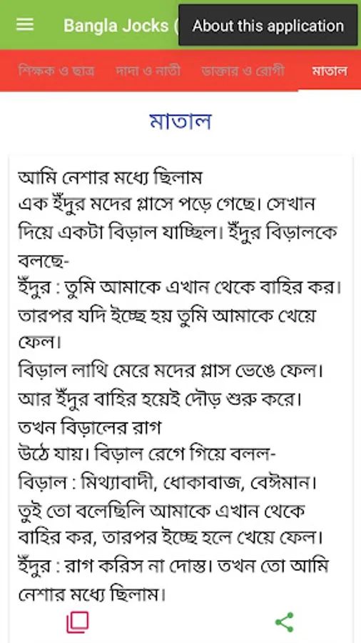 This is a Bengali jokes app that will give you a lot of fun. As a Bangla speaker, almost everyone likes to read Bengali funny jokes. We have been given a lot of fun funny jokes in this app. In the life of our actions, less and less everyone tries to mix in different ways in order to enjoy or to enjoy some of the mind, such as some after the Bangla puzzle and some even read proverbial sentences. Read our laughter app and laugh out loud. Read our Bangla jokes or the best laugh jokes on your own and send sms to your loved ones and have more fun.