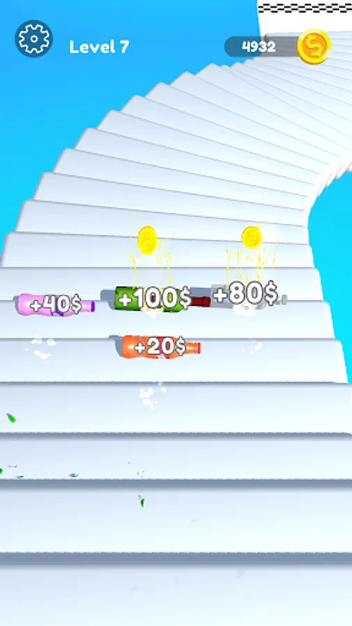 Ready to start a journey of making art with bottles? Dive into "Bottle On Stairs ASMR" and discover the joy of merging, bouncing, and breaking bottles. Let your imagination run wild and enjoy the magic of glass. Download now to begin your bottle adventure!