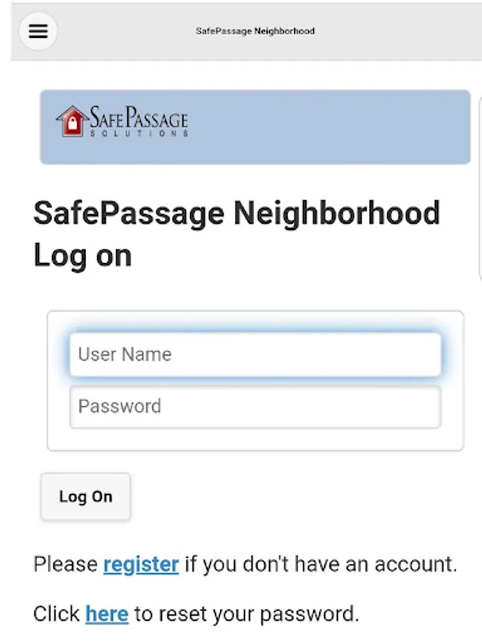 A user must go through the registration process an order to obtain credentials used to access the app. After your community registers to use the SafePassage system it is only then that you will be able to use the registration process. Without your community’s participation you will not be able to register to use this app.