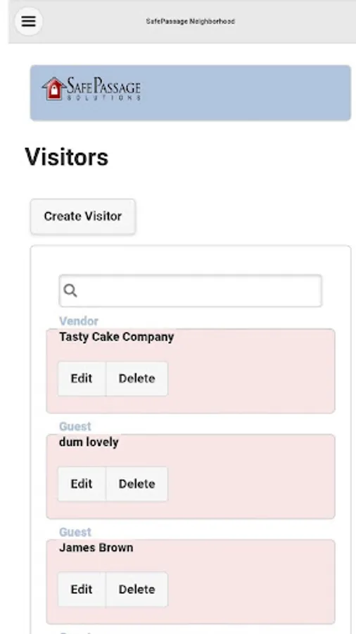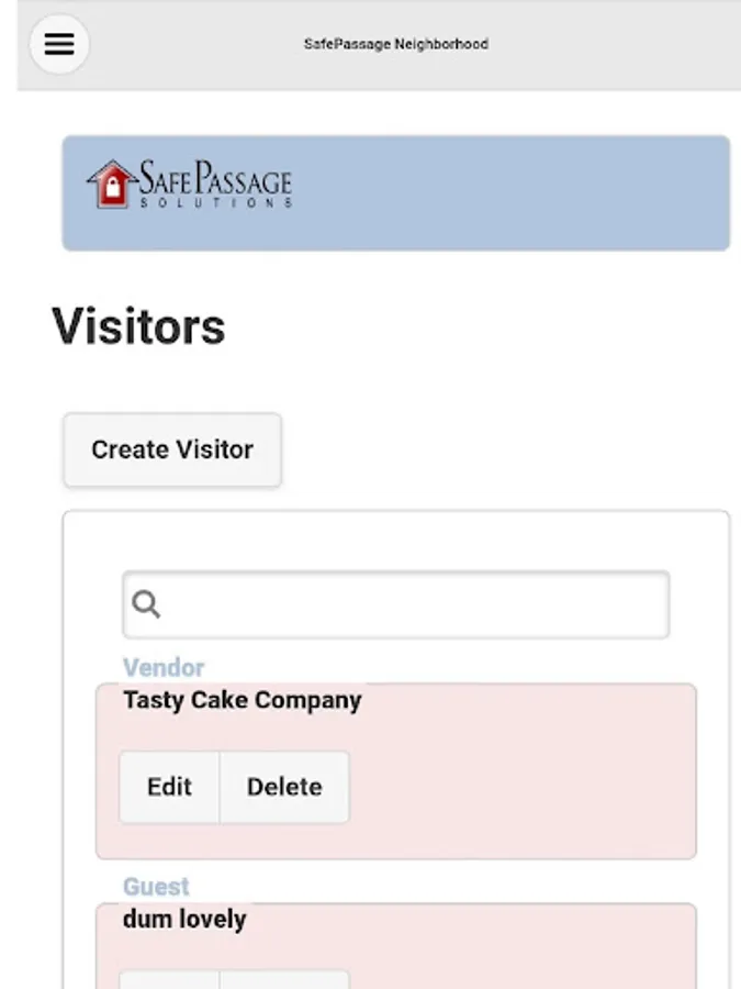 The SafePassage mobile app works for commercial and residential communities that have subscribed to our general access control software offering, SafePassage Guard. The app goal is to provide users with an application for updating their visitation list as well as a host of other services.