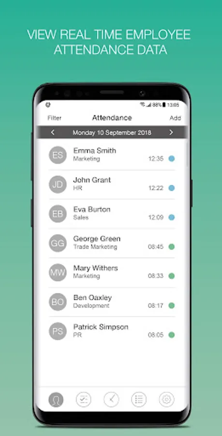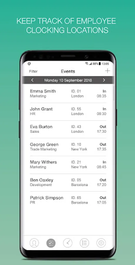 Clock and view work hours on any phone or tablet, from any location, in real time. Employees can clock in, clock out, and view their hours. Authorized supervisors can additionally view real-time staff presence lists and edit employee records. For use with the TimeMoto cloud-based time and attendance system.