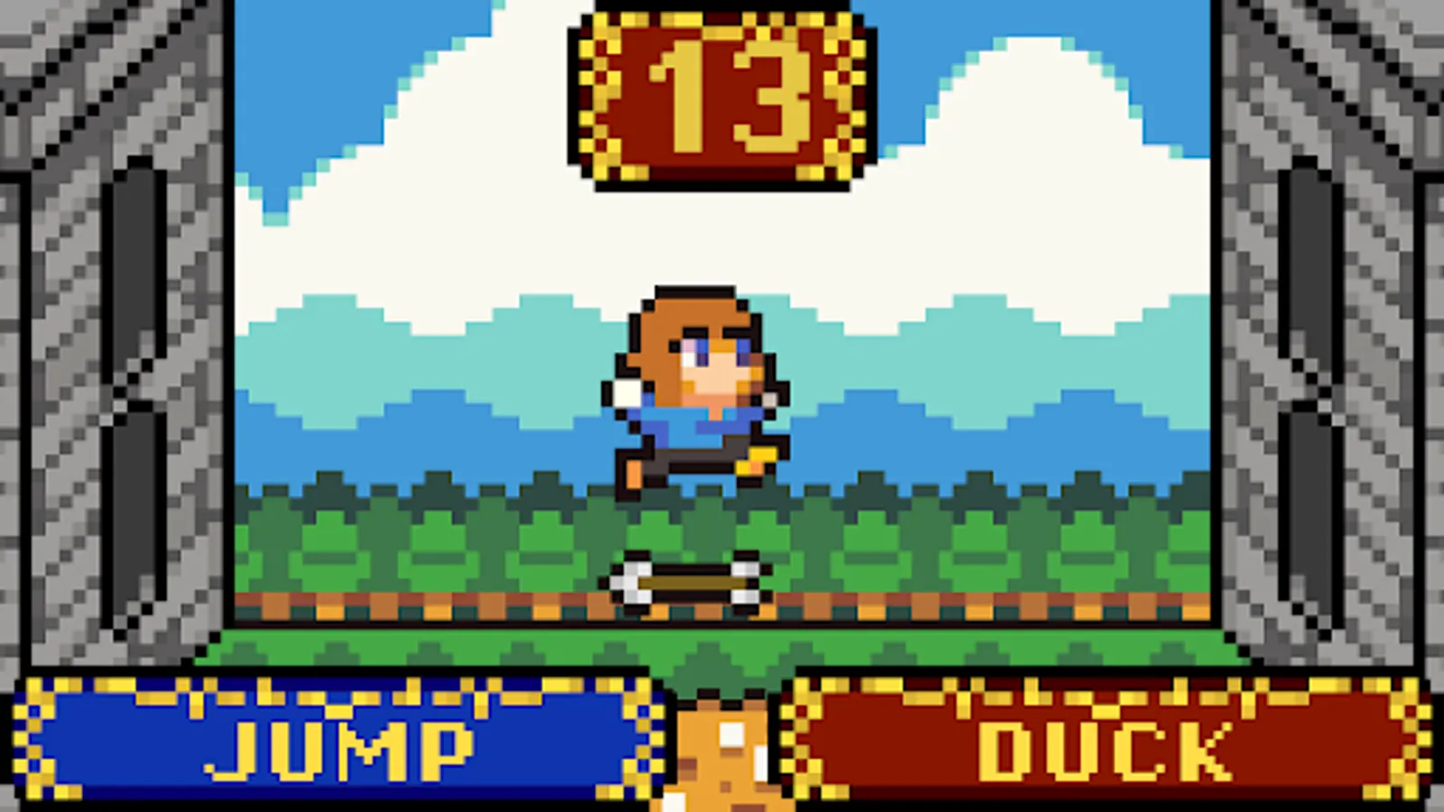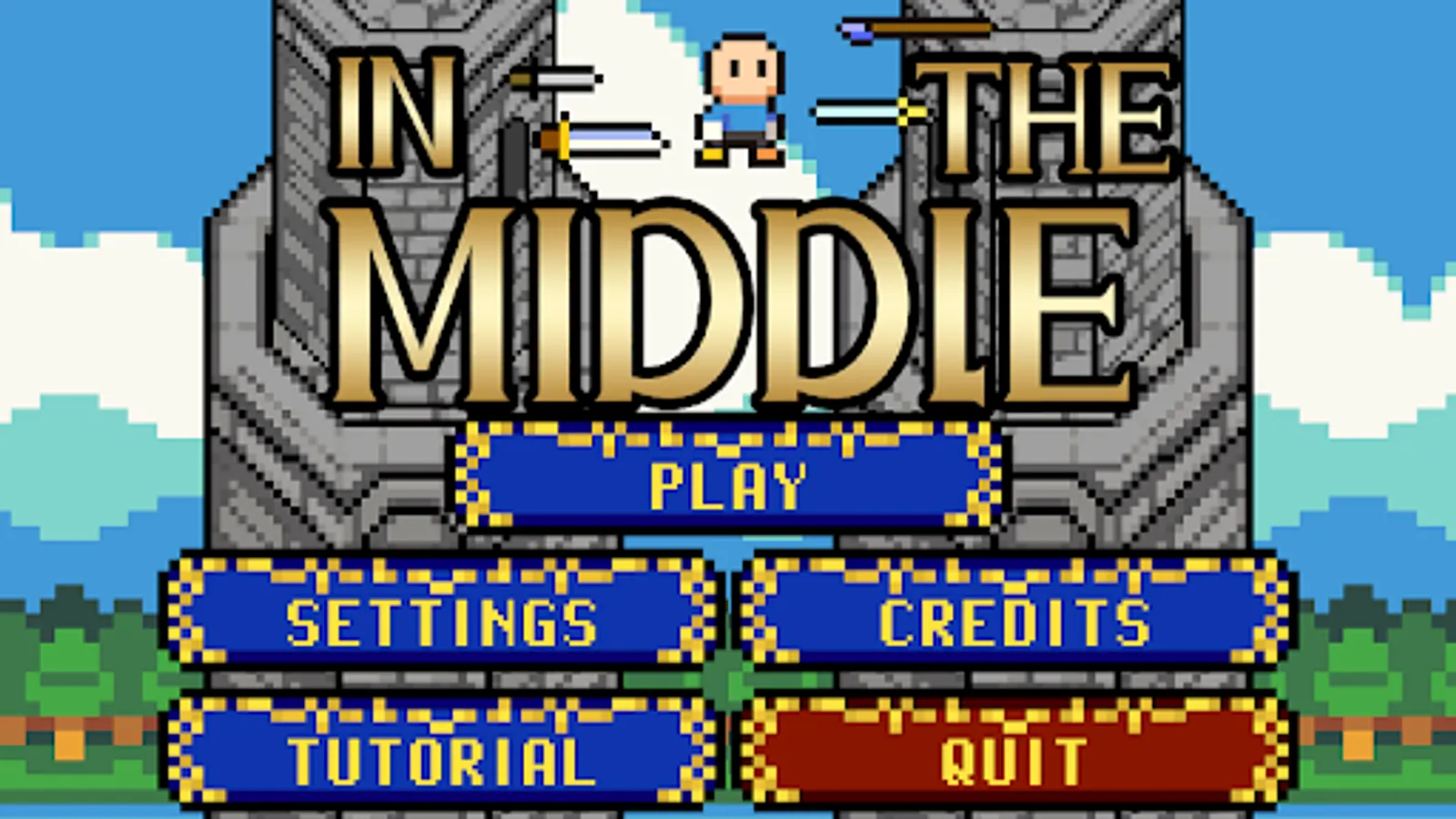 In the middle is a casual arcade game. You're an innocent bystander who finds themselves in the wrong place at the wrong time, caught in between two warring sides, neither of which seems to care about collateral damage. Duck and jump to avoid weapons that are being carelessly tossed around. Survive for as long as you can and unlock new characters.