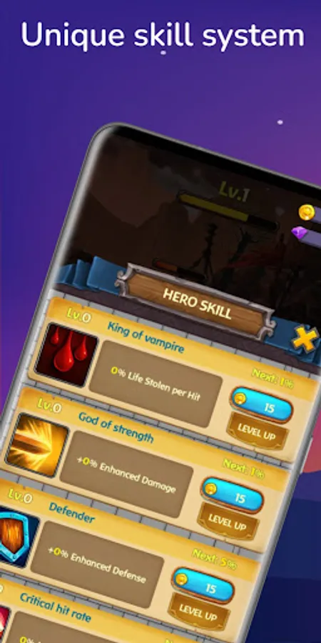 + feature upgrade skills, equip each level