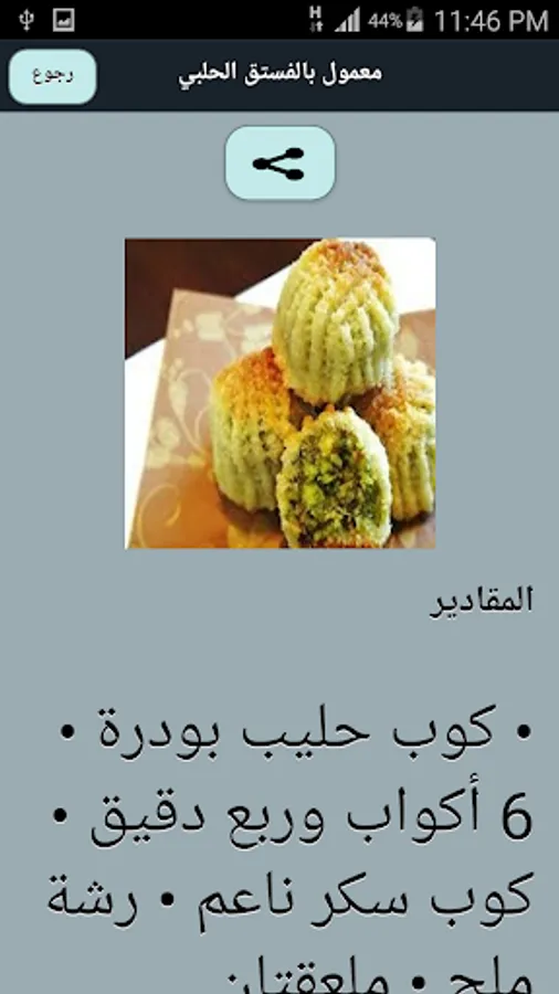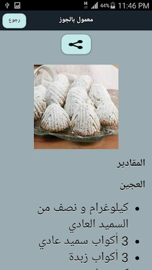 حمل هذا التطبيق الان و شاركي الوصفة التي تعجبك مع الاصدقاء من خلال زر المشاركة الموجود بالداخل.
