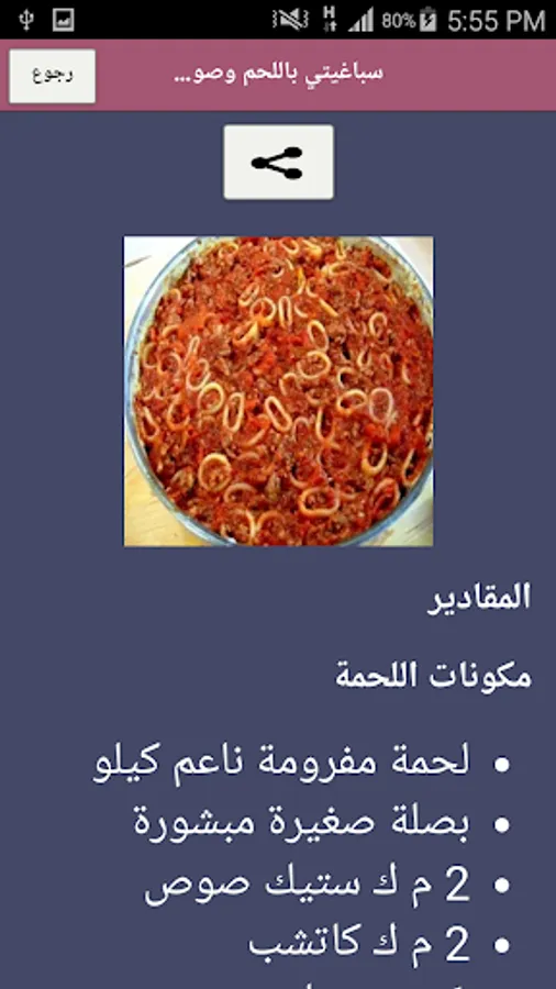 حمل هذا التطبيق الان و شارك الوصفة التي تعجبك مع من تحبي من خلال زر المشاركة الموجود بالداخل.