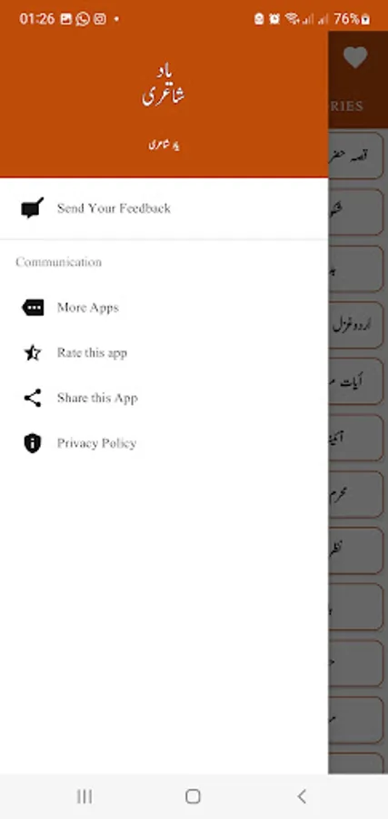 Good Morning, Night, Zindgi, Ghum, Tanhai, Zid, Dhoka, Badnam, Wqt, Islami ,Mosam, Yad, Birthday, Wada, Dosti, Zakham, Humsafar, Ishq, Nafrat, Chaiy, Eid, Dua, Mout, Zamana, Dill etc