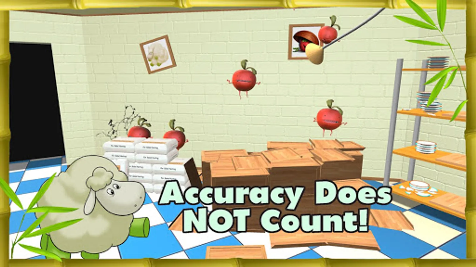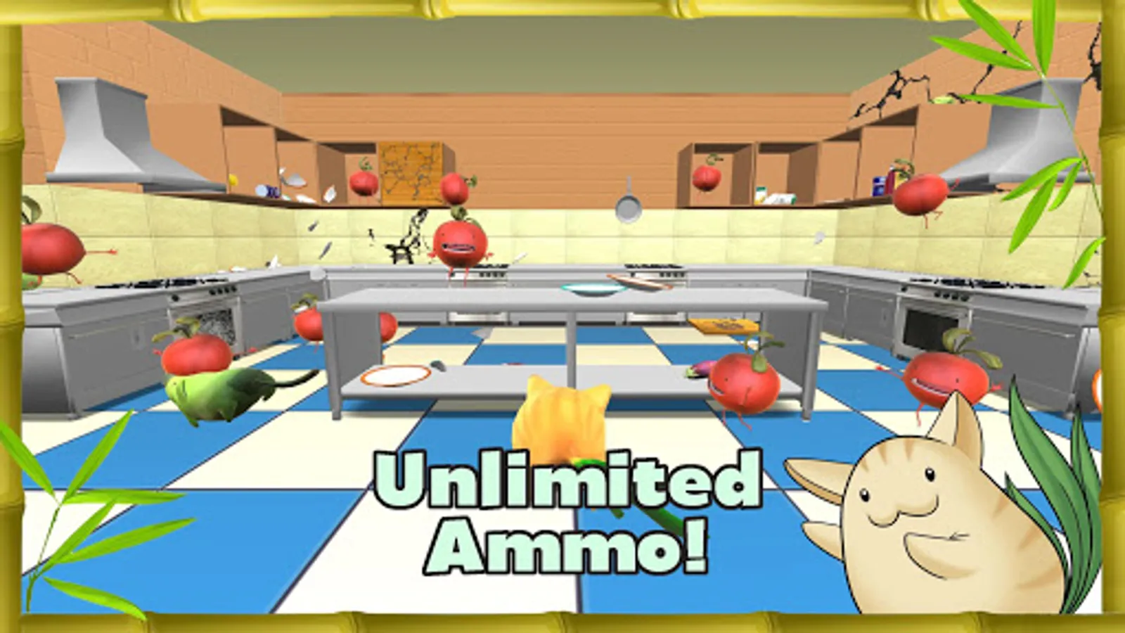 A family friendly FPS with cartoony weapons and destructible environments. 3D arcade rail shooter action in a simplified mobile format. No guns or zombies here, just tasty characters and kitchen destruction.