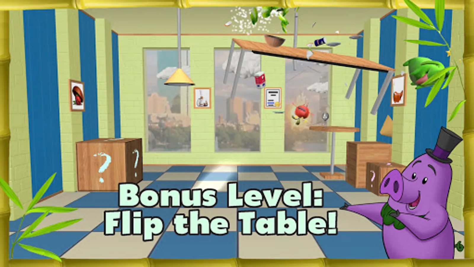You are The Chef and you discover that salad ingredients have come alive as cute, but mischievous characters that are ruining your kitchen! Toss whatever you can find at them to save what remains of the kitchen, or just destroy everything in the process.