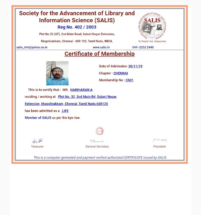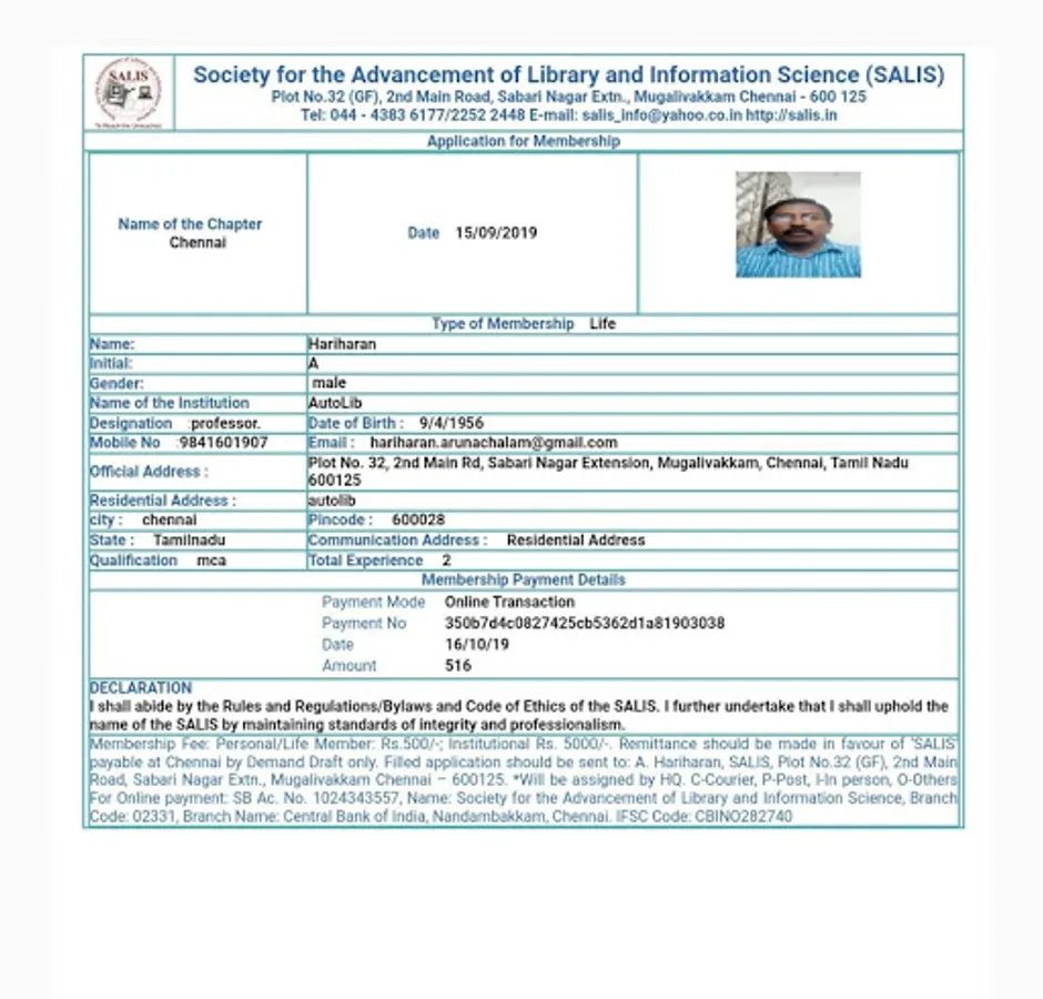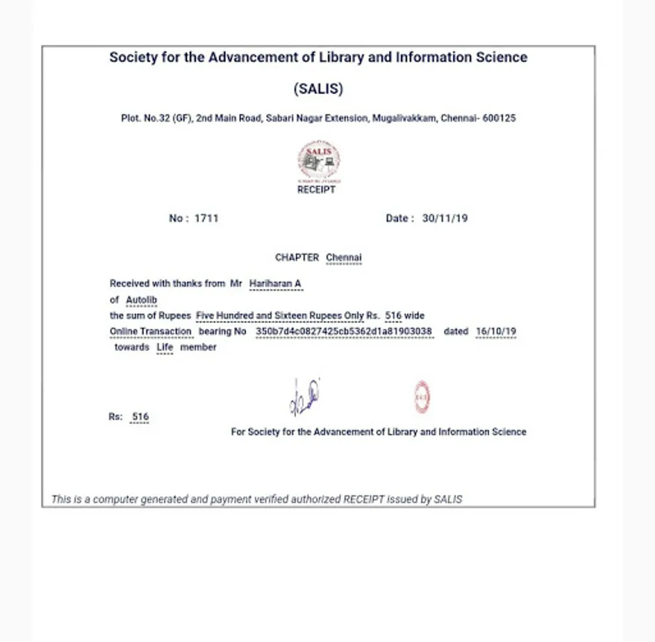 Eligibility: Any professionals holds a certificate/diploma/degree in Library and Information Science or any professionals who wish to work for the objectives of SALIS.