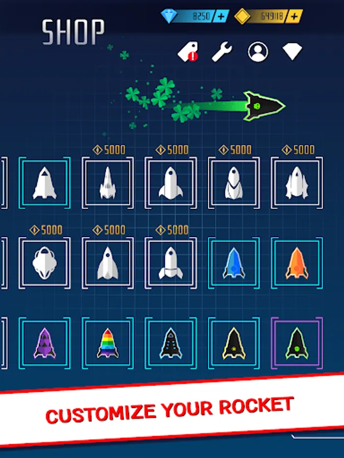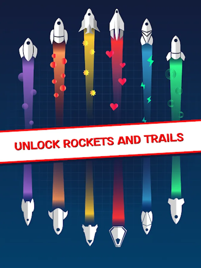 Race through over 100 tracks with insane speed whilst dodging everything in your way. Unlock over 65 awesome rockets and trails to customize your rocket and hit the finish line in style!