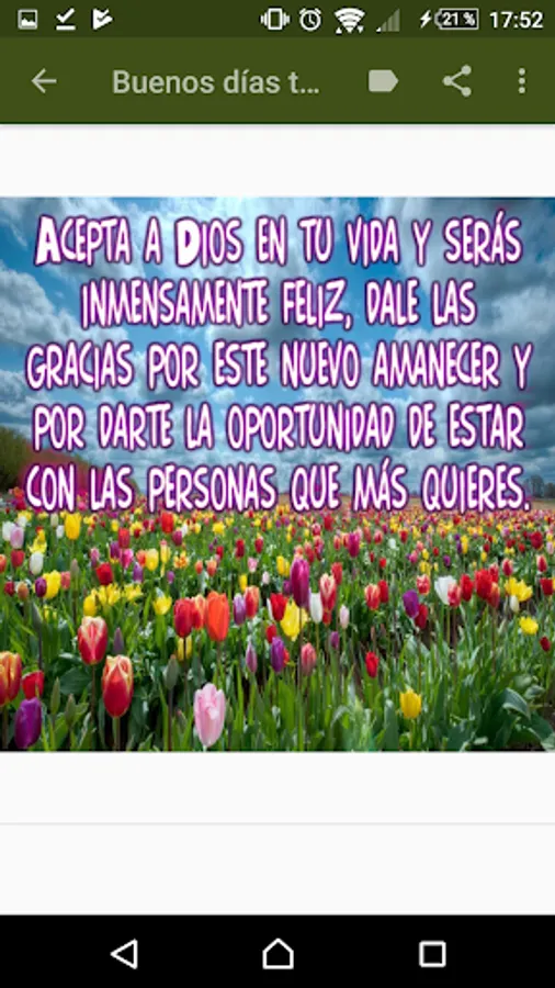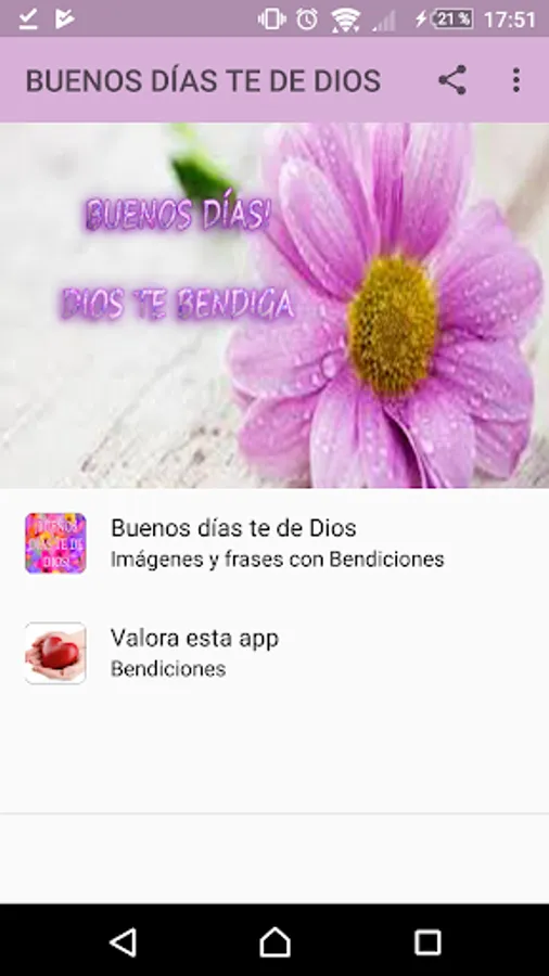 Download this application and make sure that it is what you are looking for because with this app you will be able to share images at any time of the day, in all your social networks, with all your friends, with your family... The images are always different and you will be able to use one every day different image.