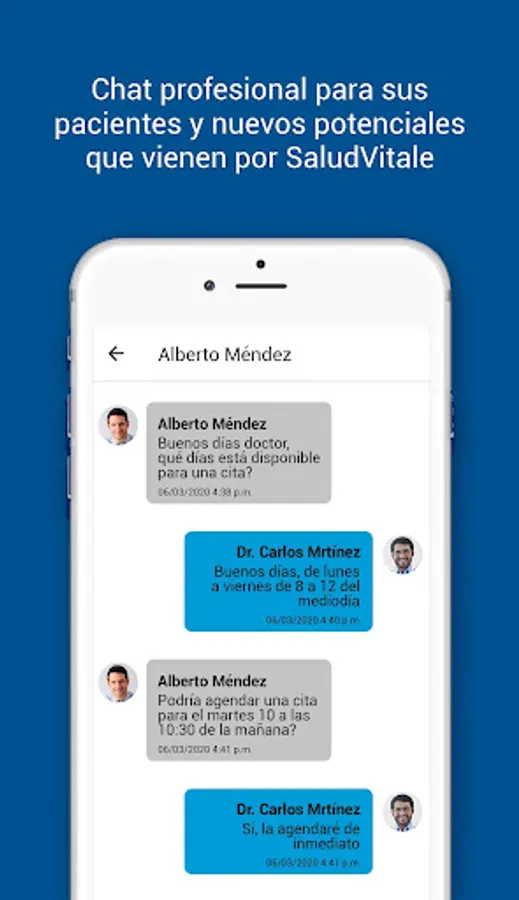 SaludVitale is an APP that makes it easier for you to connect with people who need your services and save you time and money in managing your office or clinic.