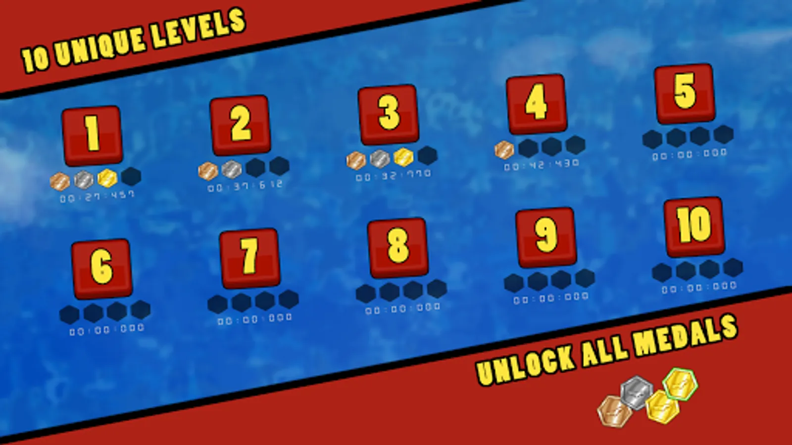 - Unlock 100% completion by unlocking all medals.