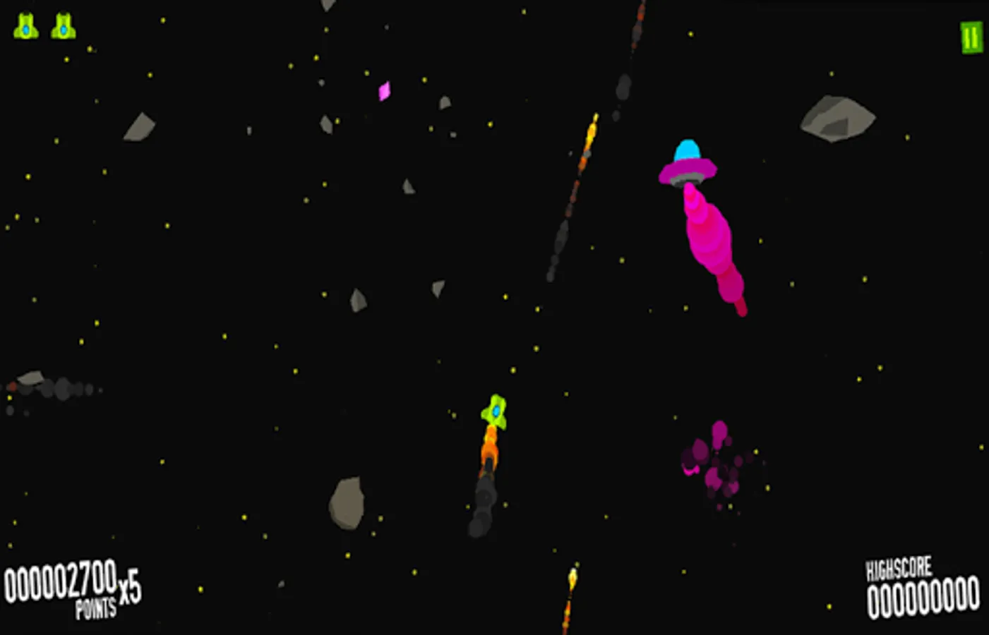 A basic game where you destroy asteroids and enemy ufos to gain Score!