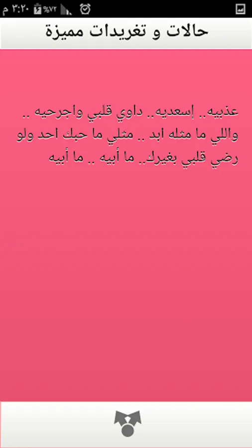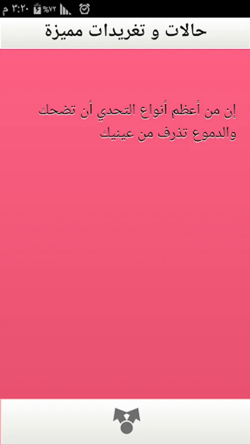في هذا التطبيق اجدد حالات و التغريدات المميزة لوضعها و ارسالها الى الاخرين من خلال زر المشاركة الموجود بالداخل.