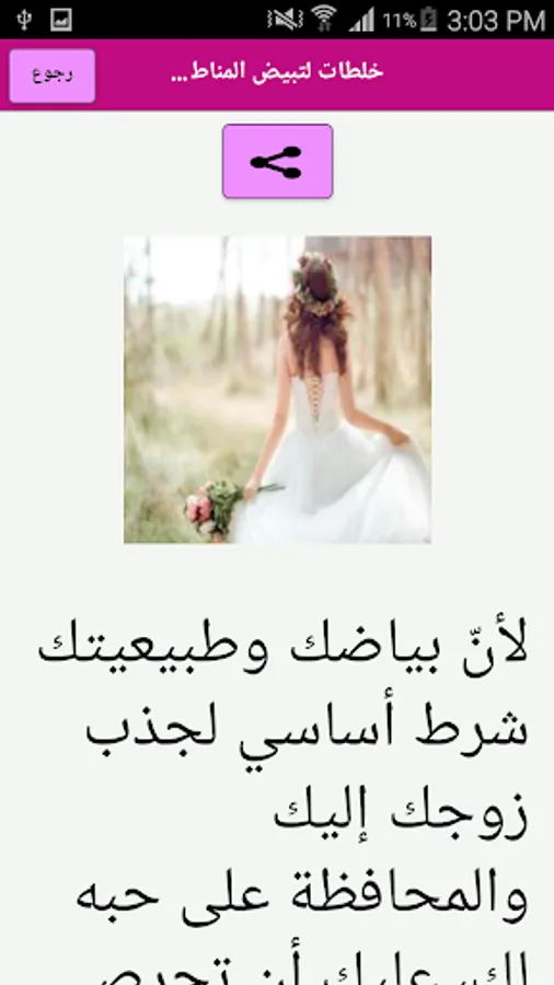 في هذا التطبيق لقد قمنا بجمع اجدد الوصفات الطبيعية لتبيض المناطق الحساسة بشكل سريع و بدون الحاجة الى دفع تكاليف لعلاجها.