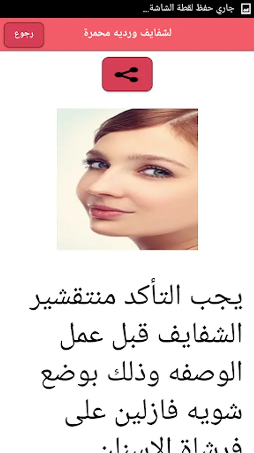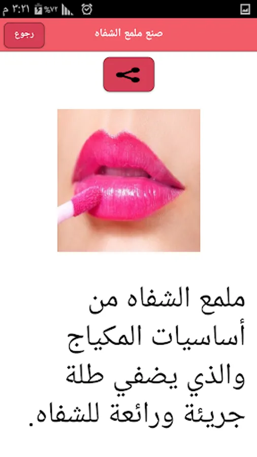 حملي هذا التطبيق الان و كوني اول من يعتني بشفاه بشكل جميل و جذاب و شاركيه مع الاصدقاء من خلال الضغط على زر المشاركة الموجود بالداخل.