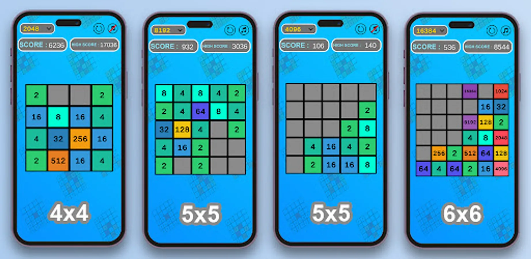 You can select your preferred difficulty mode – whether it's the familiar 2048, the more challenging 4096, the daunting 8192, or the pinnacle of 16384. This customizable feature empowers players to find their perfect level of challenge from the start. Each mode offers a distinct puzzle experience, allowing you to immerse yourself in the game and choose the level that best suits your skills and preferences.