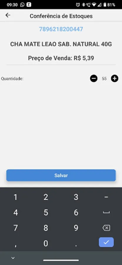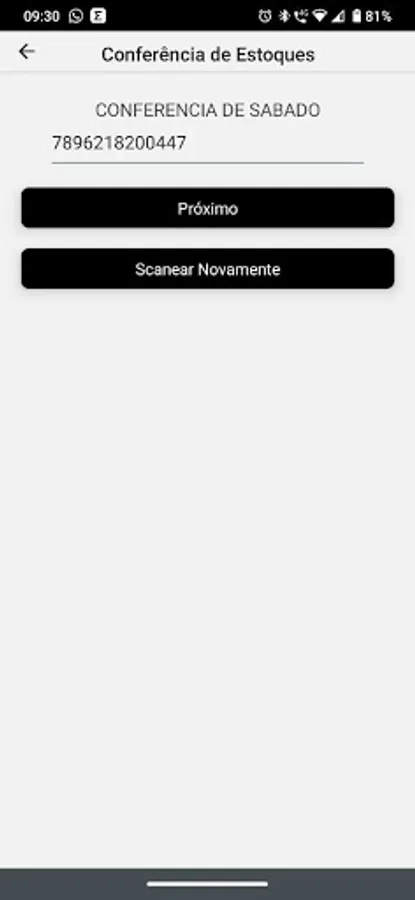 The application aims to check stocks via cell phone with the option of entering the barcode or scanning.