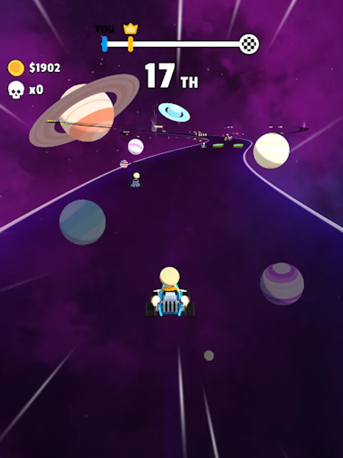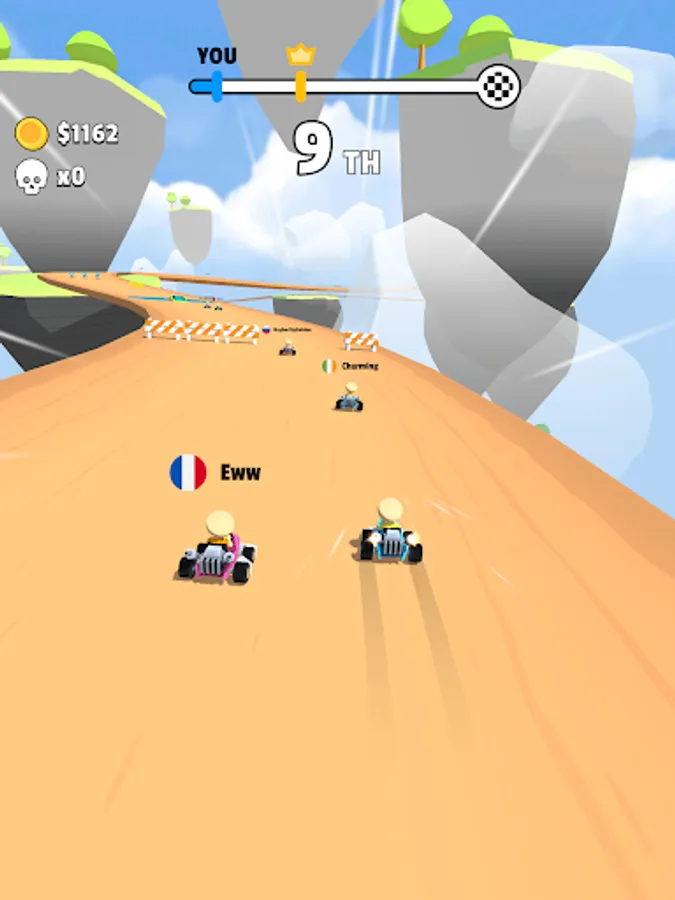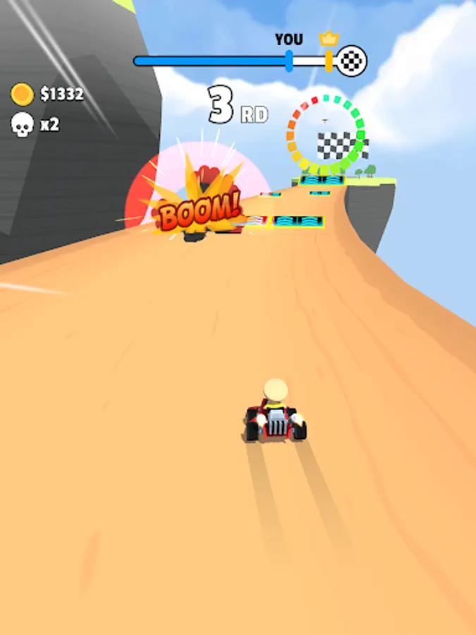 Super fun kart racing. Race against other players and become the best. Pick up items along the track to beat your opponents.