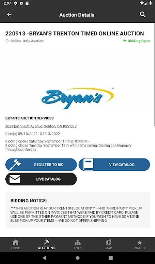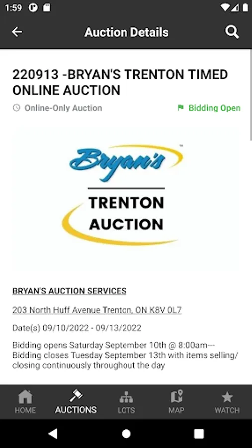 *Receive push notifications about upcoming events and lots you've watched and/or bid on