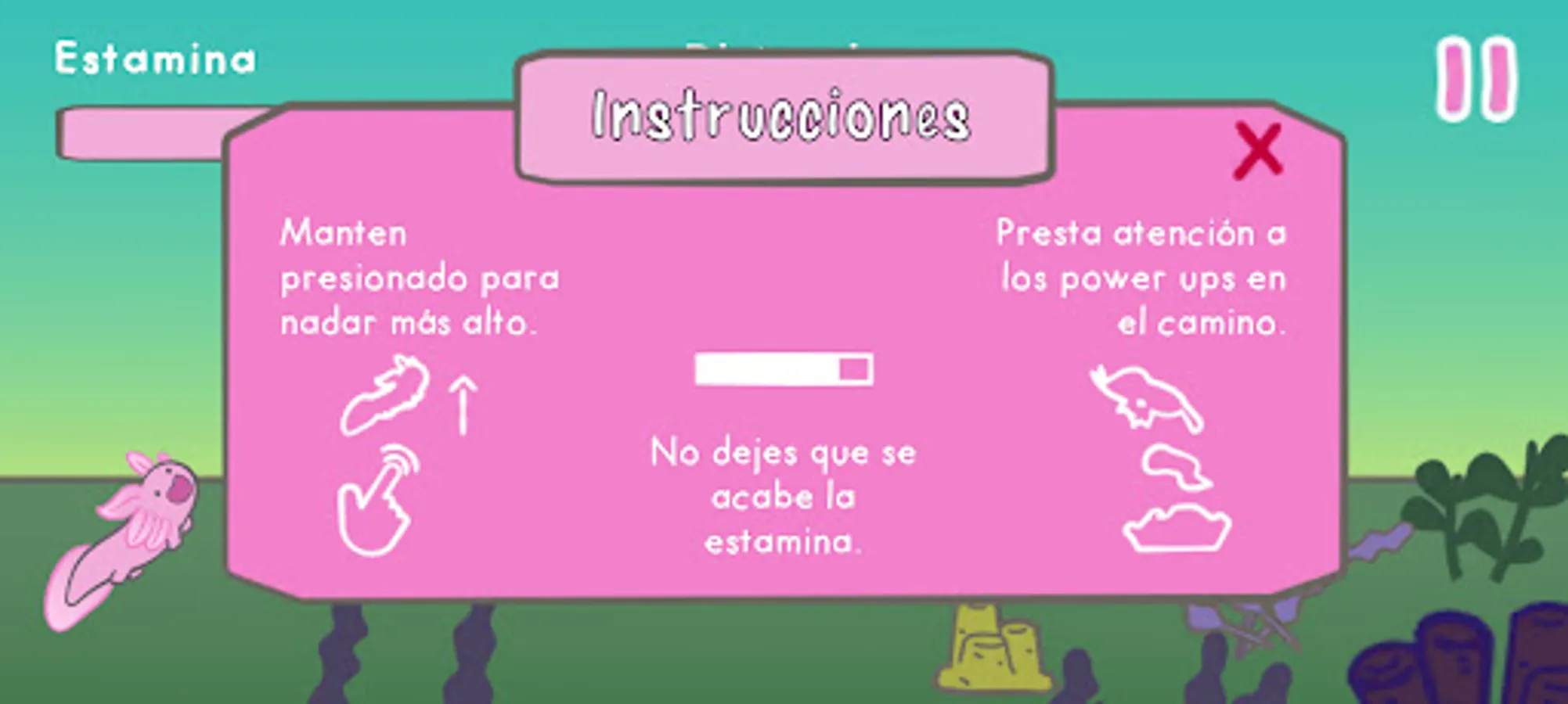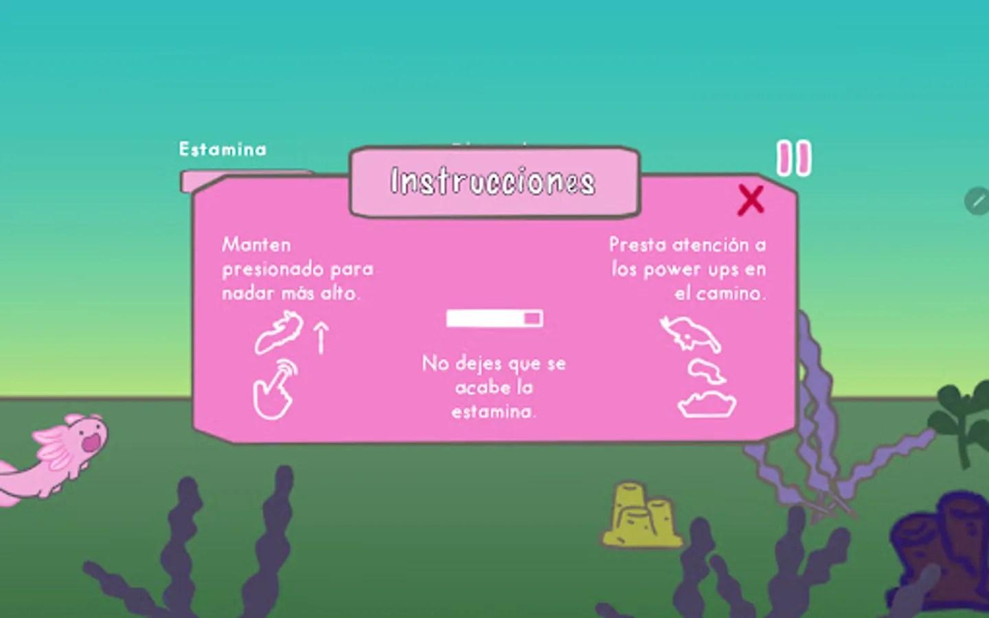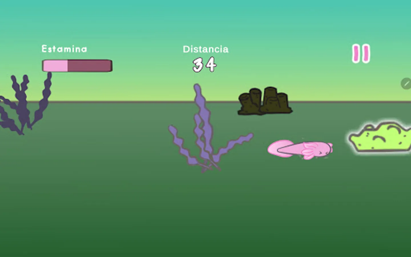 Join the little axolotl Hugo on his underwater adventure. Try to swim as far as possible using the various power-ups in play.