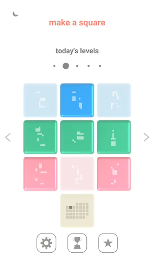 Everyday a new set of levels will appear, solve them and keep track of all your progress in the game’s calendar.