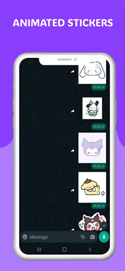 Pretty Sanrio Stickers The app offers a collection of animated stickers featuring the popular characters Kuromi and Sanrio. The stickers in this app capture various moods, expressions, and activities of Kurumi and Sanrio, providing users with a wide range of options to express their feelings and thoughts in a fun and creative way.