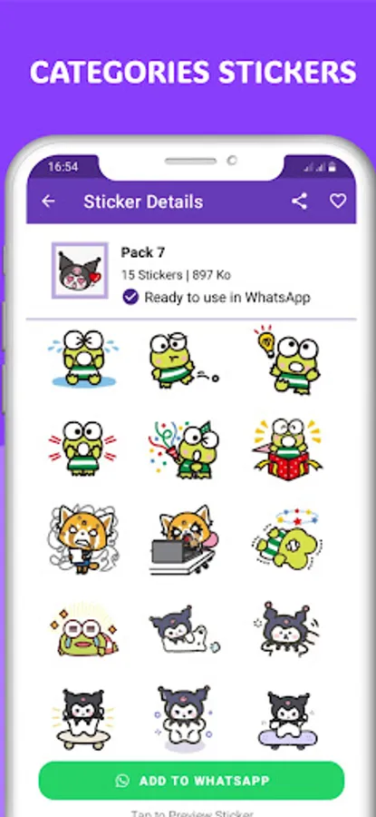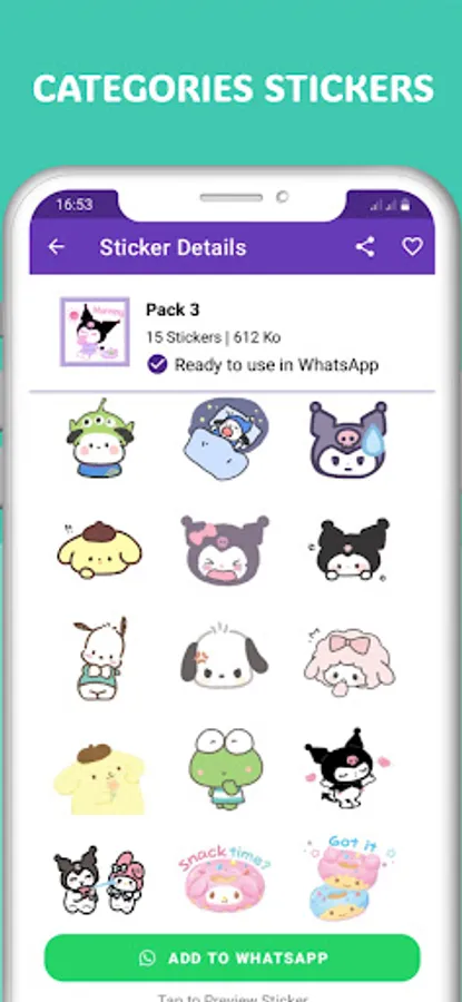 We present "Pretty Sanrio Stickers" a wonderful smartphone application created to bring the adorable Sanrio universe directly into your talks. This software is your ticket to adding adorable stickers to your talks, whether you've always loved Pompompurin , Cinnamoroll, Keroppi, or any other legendary Sanrio character.