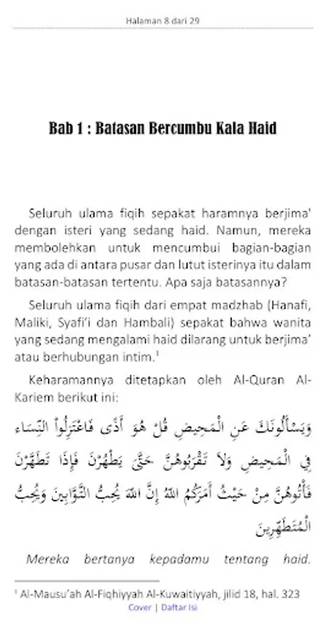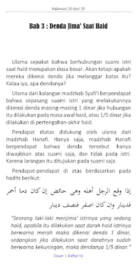 This Android application is Jima' During Menstruation By Aini Aryani, Lc. In PDF format.