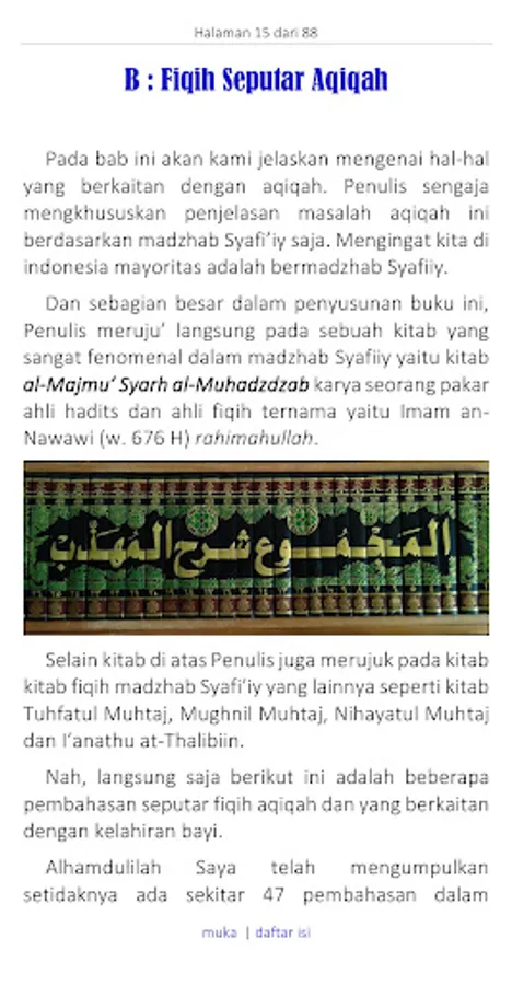 This Android application is an Explanation of the Fiqh Aqiqah Perspective of the Syafi'iy School by Muhammad Ajib, Lc., MA. In PDF format.