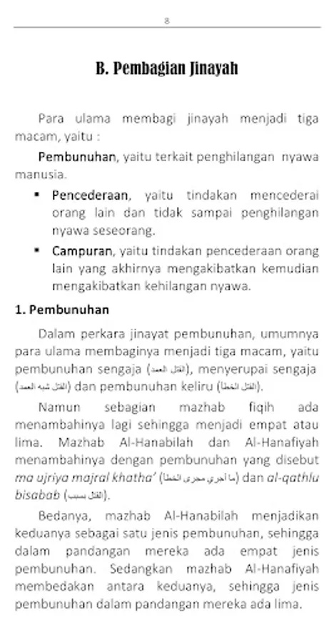 An important emphasis point to underline from the above understanding is that jinayat is a dharar act, namely endangering or harming other people. And that dharar could be in the form of dharar on the body, property or other harmful acts on the victim.