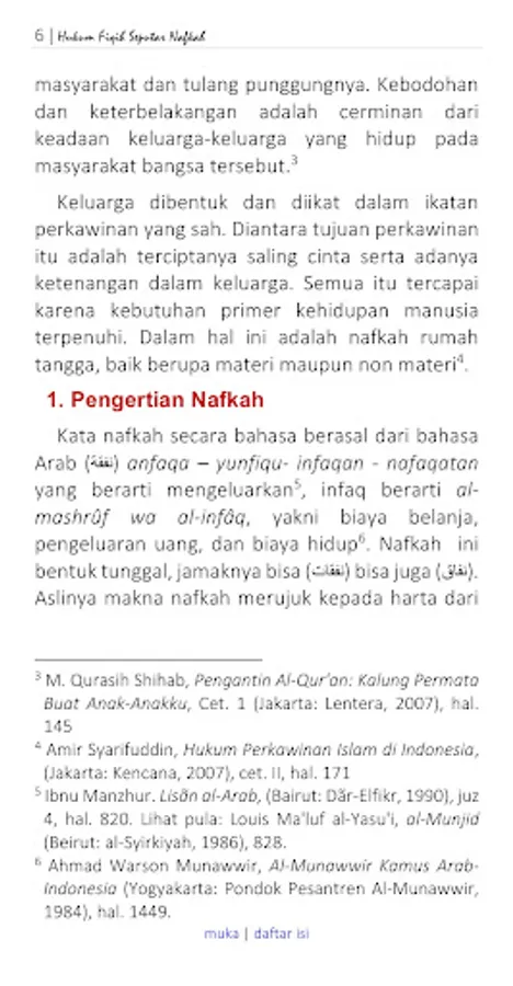 Another opinion states that subsistence comes from the base/noun form (masdar/noun) of the verb "nafaqa" which is often equated with the verbs dzahaba, kharaja, nafida and madha, meaning that these words have similarities in terms of meaning, namely both indicate the transfer of one thing to another thing.