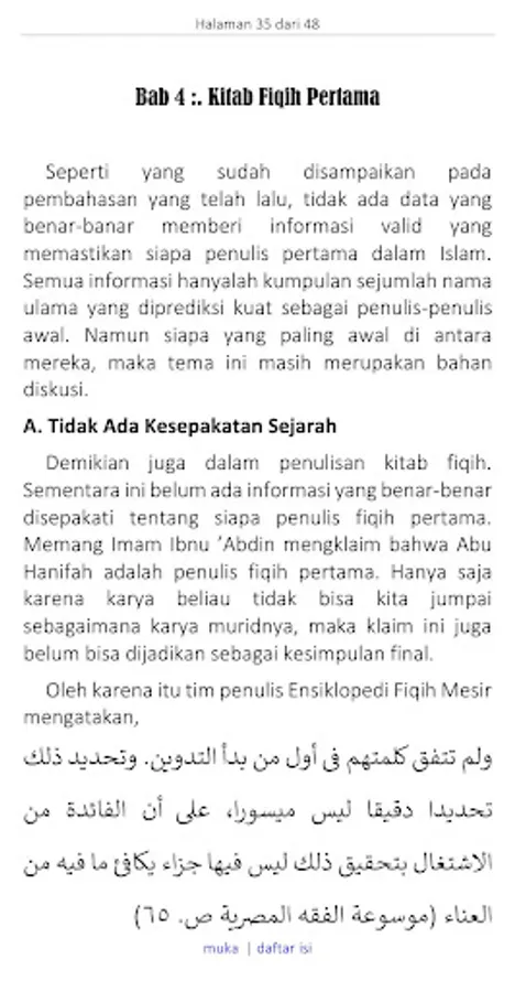 This Android application is an Explanation of the Purpose of the First Book of Fiqh in a Historical Perspective by Sutomo Abu Nasr. In PDF format.