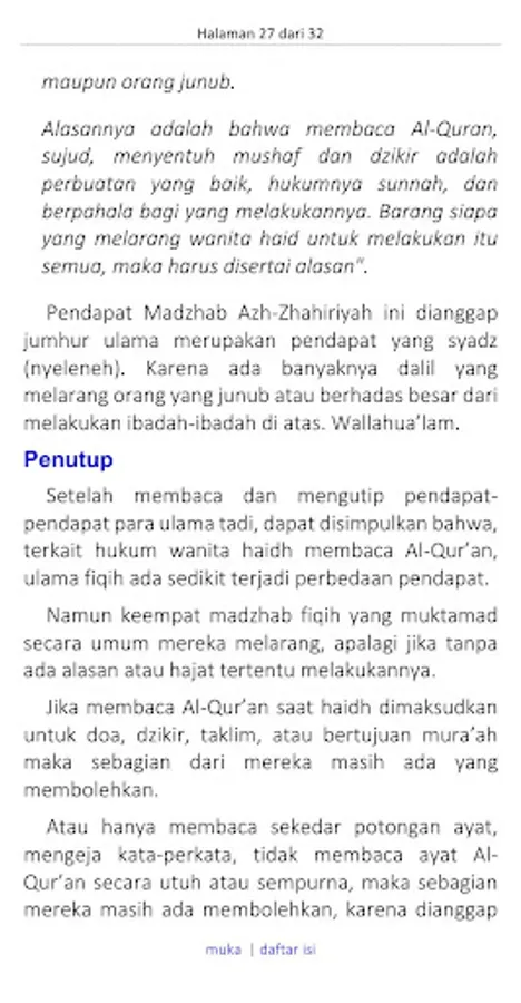 This Android application is Reading the Qur'an During Menstruation, Is It OK - Isnawati Lc. MA. In PDF format.