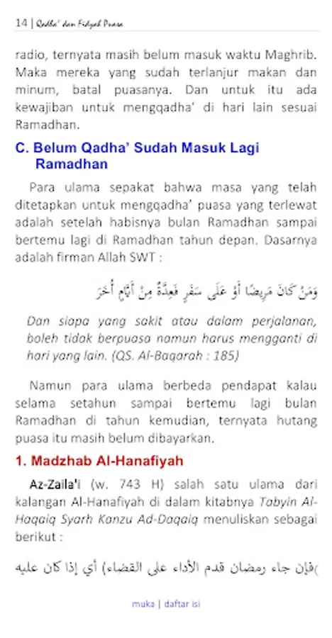 This Android application is an Explanation About the Meaning of Qadha' and Fidyah Fasting by Maharati Marfuah, Lc. In PDF format.