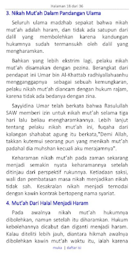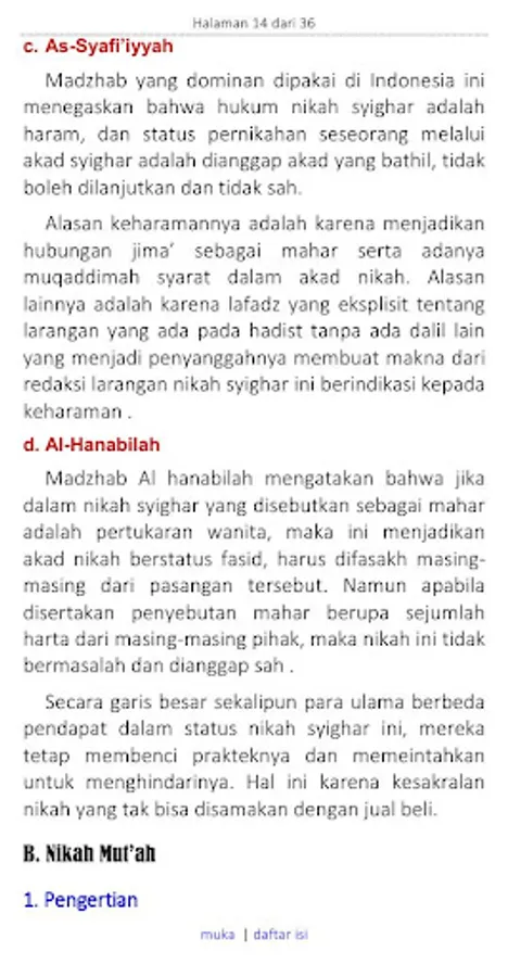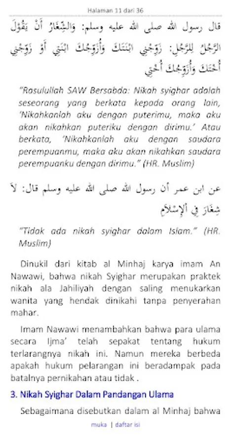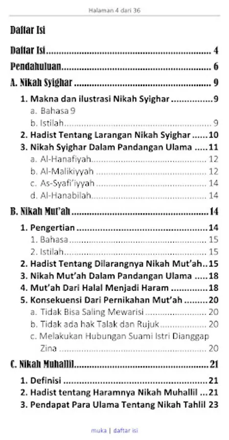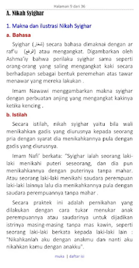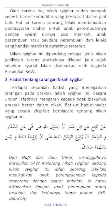 The scholars then classify the types of marriage that are forbidden in Islam by departing from a number of good arguments in the Qur'an, Sunnah, and Ijma'. There is a type of mut'ah marriage whose purpose is often just to have fun, there is also tahlil marriage which is considered a planned deviation in the chapter on marriage, then there is also syighar marriage which is often very similar in practice to a conditional barter system.