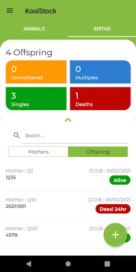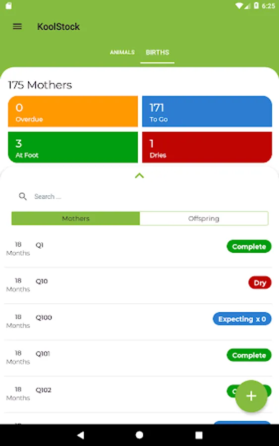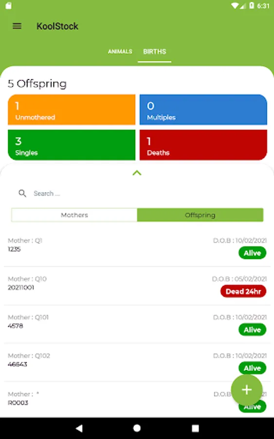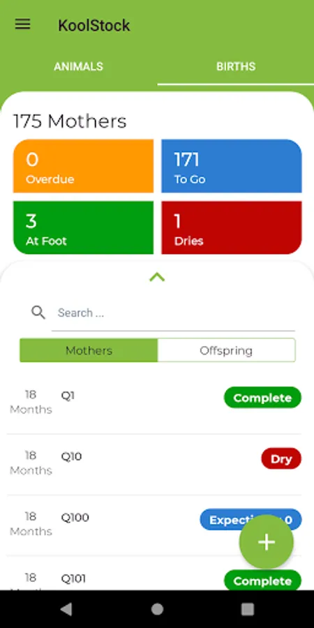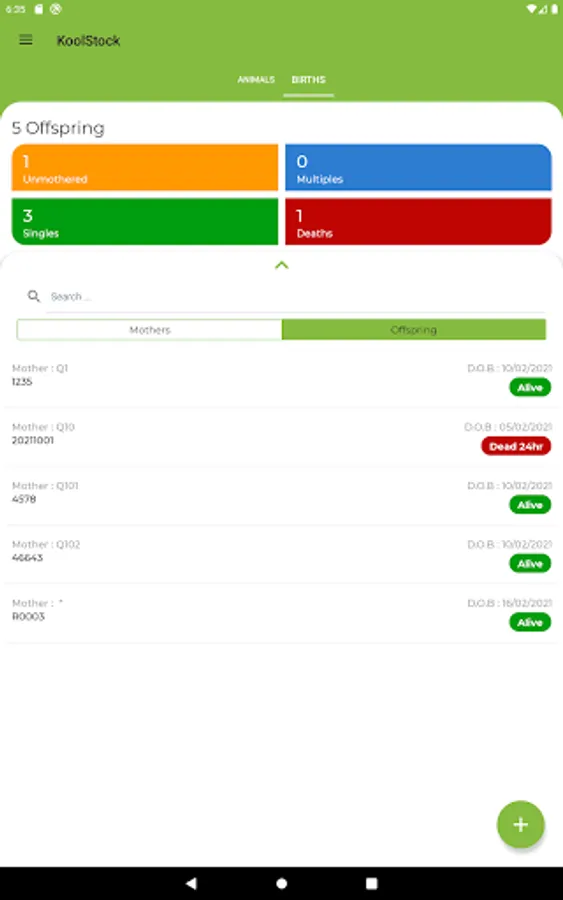 Sapien KoolPerform clients can setup Dam lists for recording Offspring at birth in the paddock. Multi user supported.