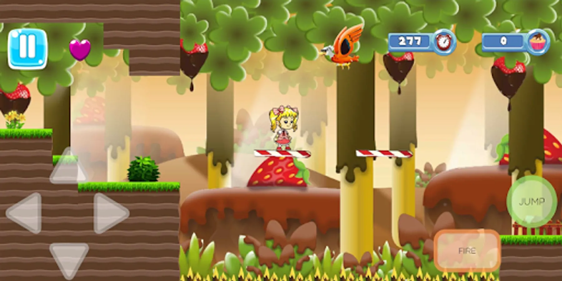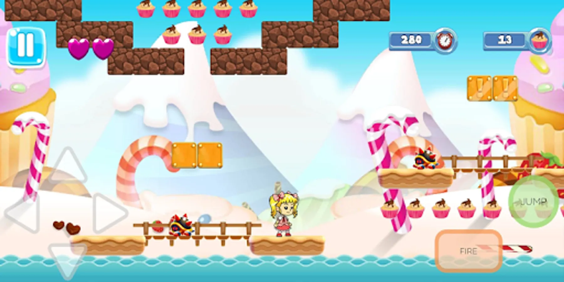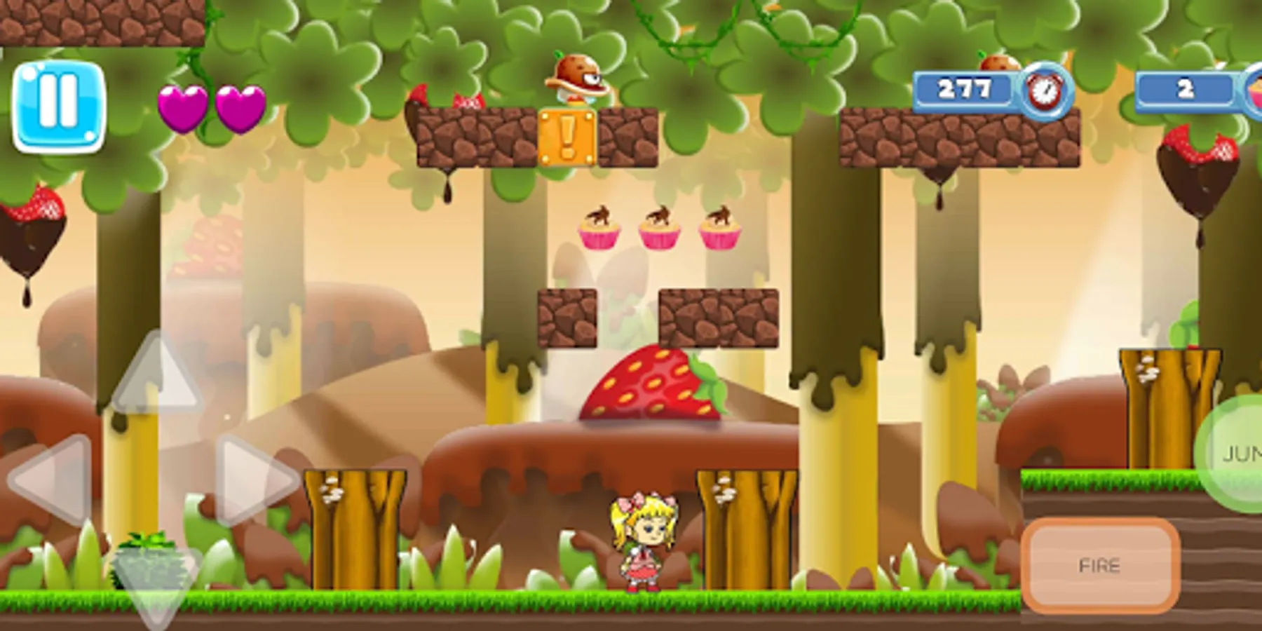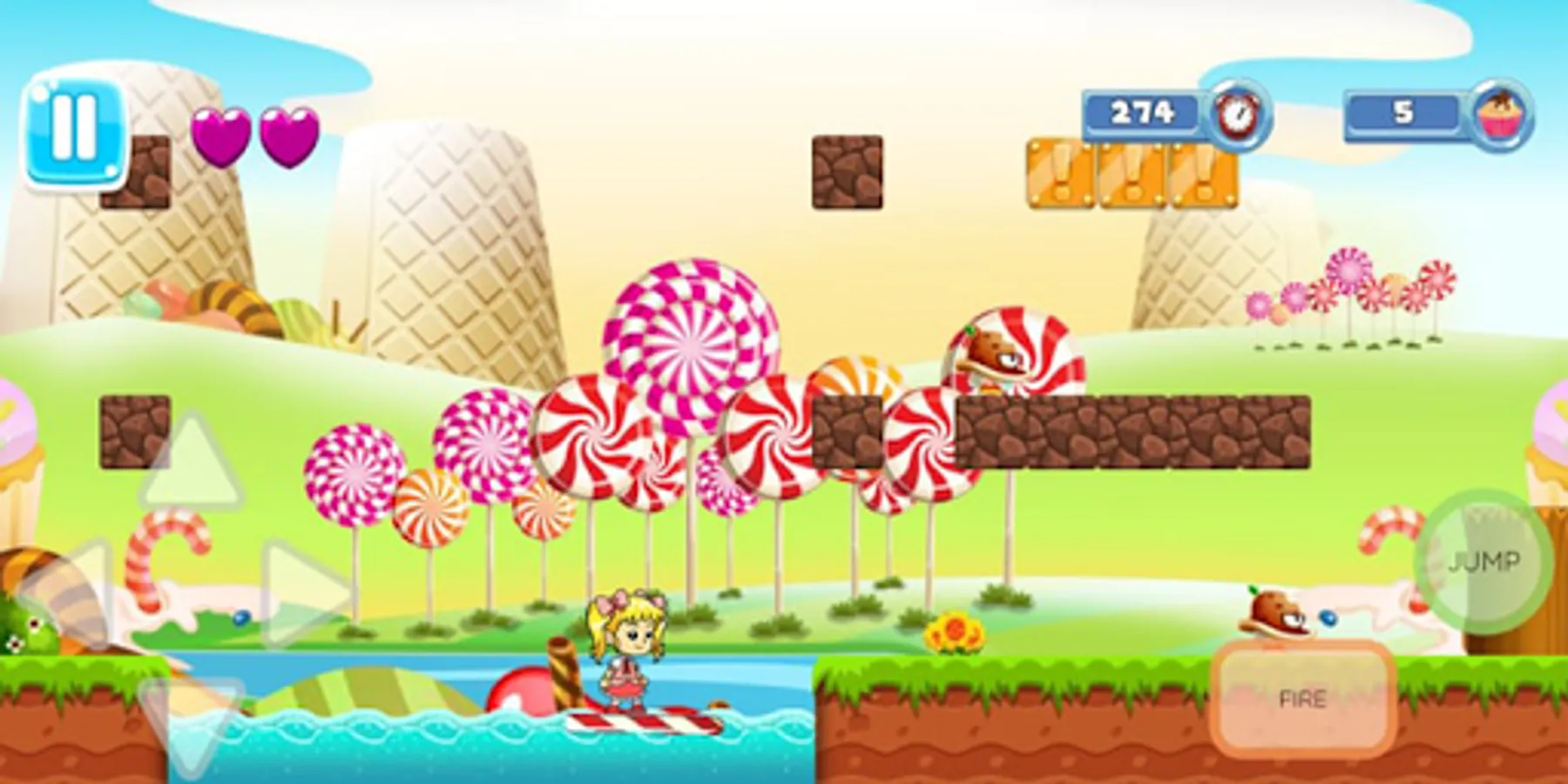 In this sweet fabulous adventure you will take control of the main character .You will not only try to make your way to the finish line, but you can also try to hit the best score by collecting cakes , which yo can trade to power up your character, CandyGirl. There are multiple monsters , bosses , and levels in this candy adventure jungle world. This is a free game , and it offers relaxing well-designed patforms . This the best free classical game around in Android Store ..