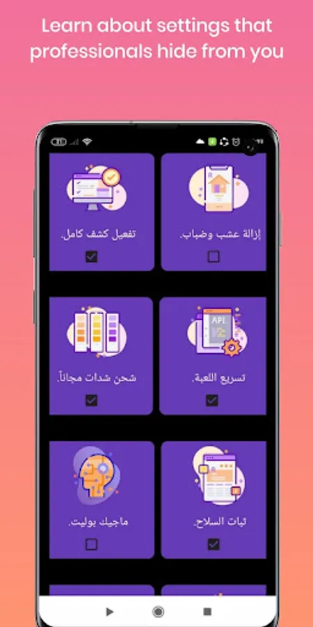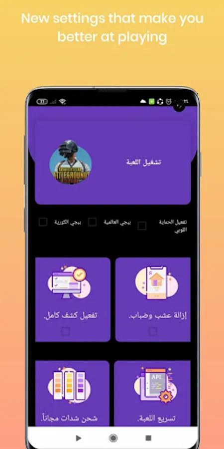 هام جداً : التطبيق لا يتدخل مباشرة في اللعبة أو يعدل ملفات اللعبة. بل تتمثل مهمته الرئيسية في العمل على الهاتف فقط ، وتحسين بعض الخصائص بحيث يكون أداء اللاعب هو الأمثل.