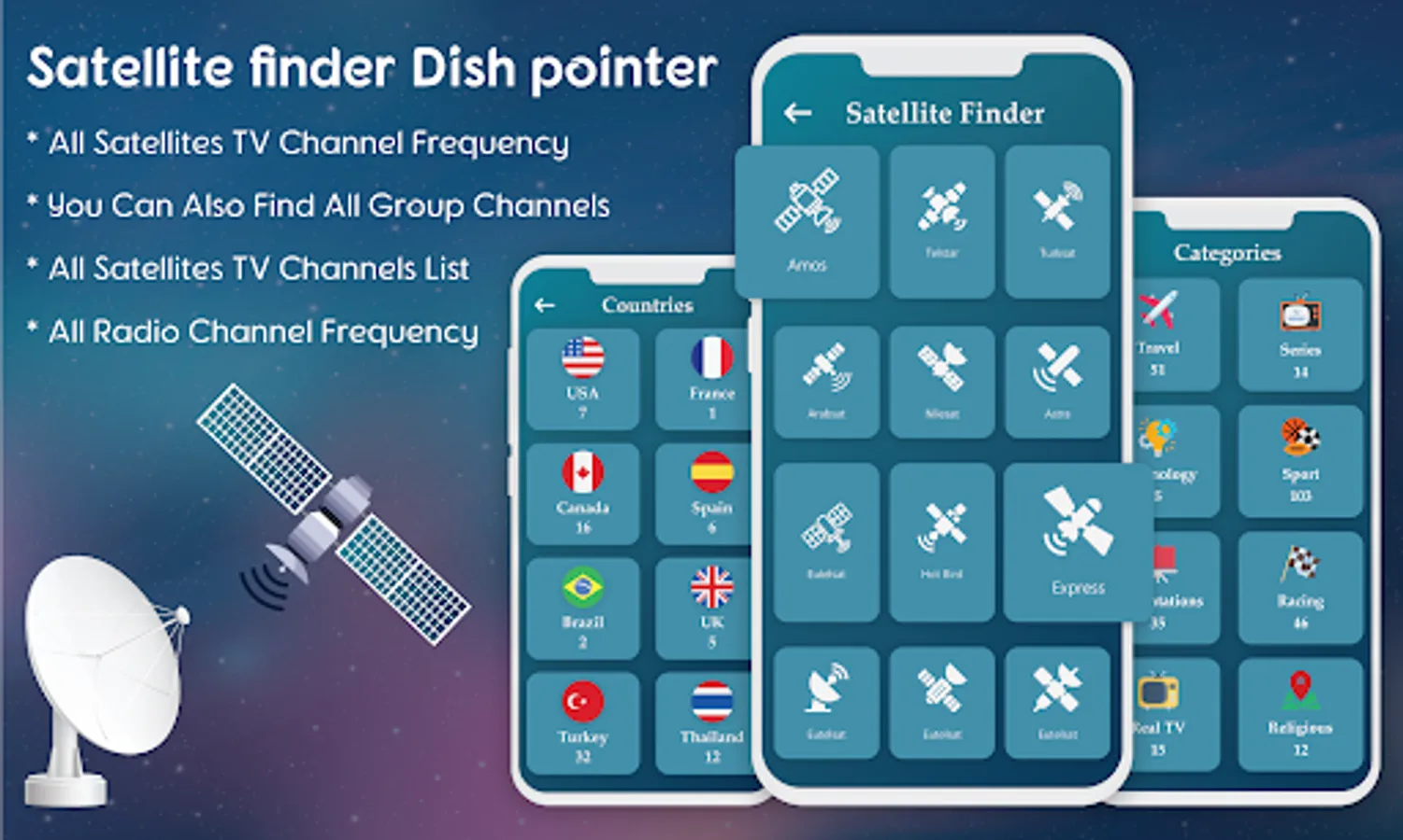 Aligning the dish is a difficult process. The satellite app-all satellite frequency finder can locate your current location and display on the compass the chosen satellite direction. Utilize the satellite finder download app to locate every satellite. Use this Satellite TV Frequency Finder satellite location tool to find the ideal dish angle.