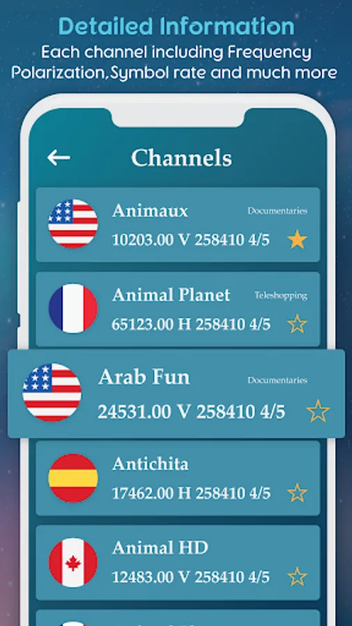 You may reposition any satellite dish with the help of the Satellite Finder app- satellite finder free dish tv. A satellite channel frequency feature is available in the free satellite dish finder app. Use this free satellite finder app to align the dish. The best satellite frequency finder- satellite finder for all tv dish tool displays the frequencies of all spacecraft.