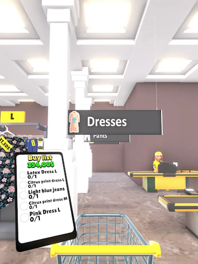 You have a list of products to buy. Walk around the store and look for the right shelves with the right products, take them and run to the checkout.